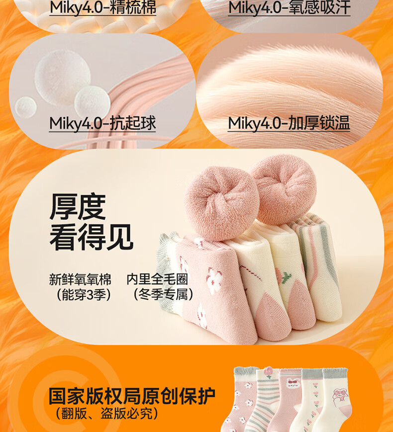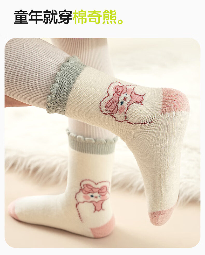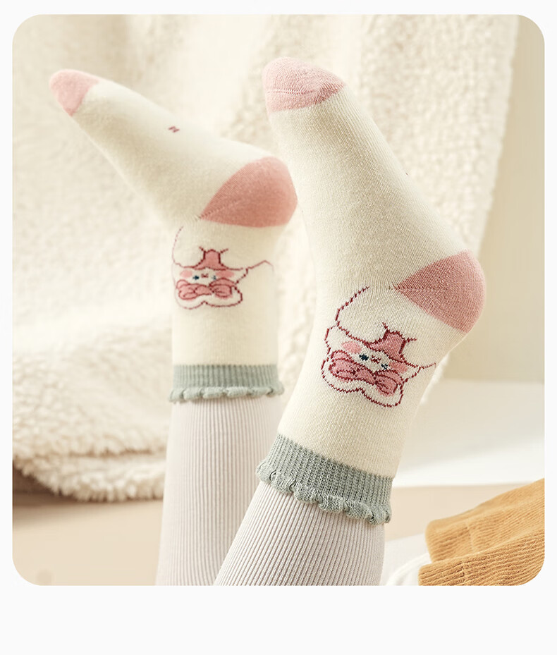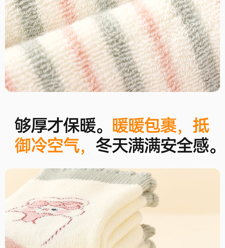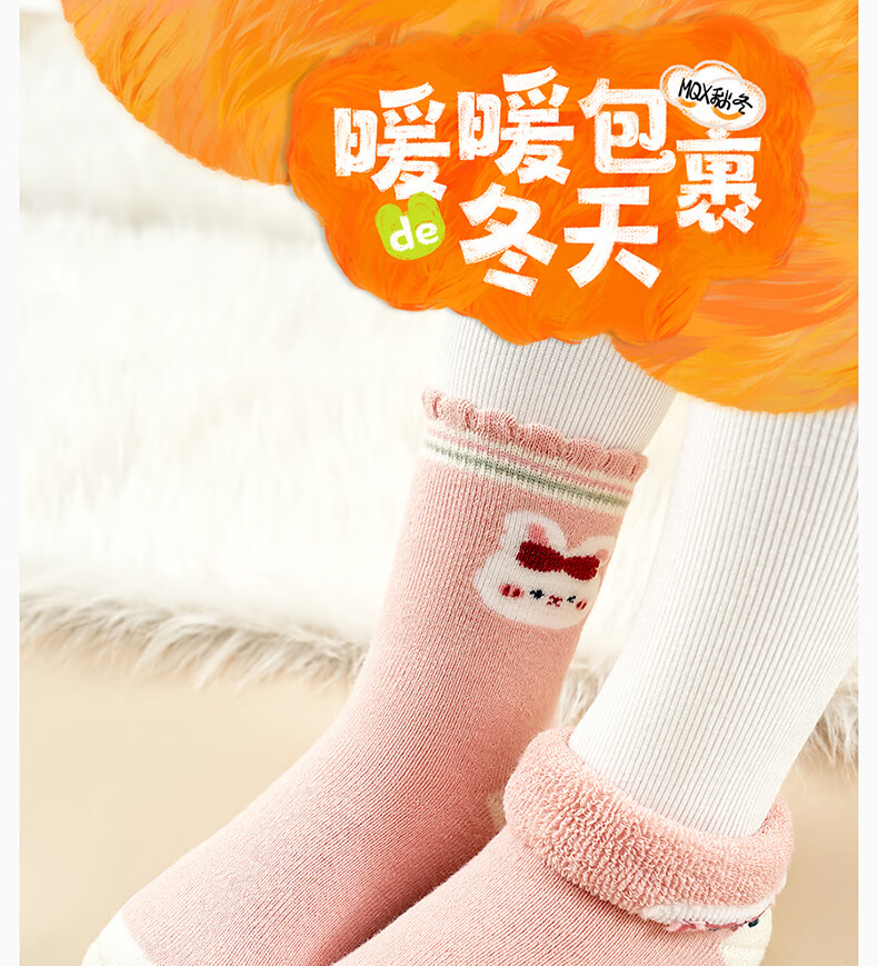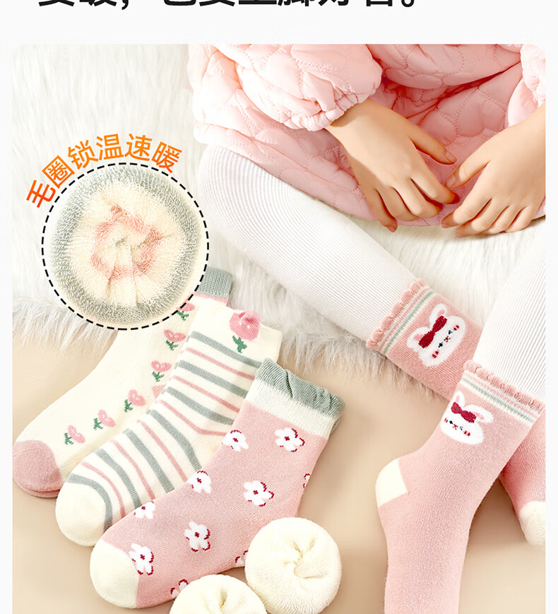 Mianqi Bear Girls' Socks Autumn and Winter Thickened Warm Mid-Tube Terry Girls' Cotton Socks Plus Velvet Long-Tube Winter Baby Children's Socks Baby Bear Thickened Terry 5 Pairs 3-5 Years Old - Recommended Foot Length 14-16CM