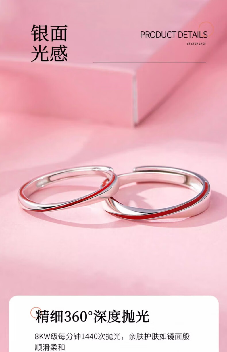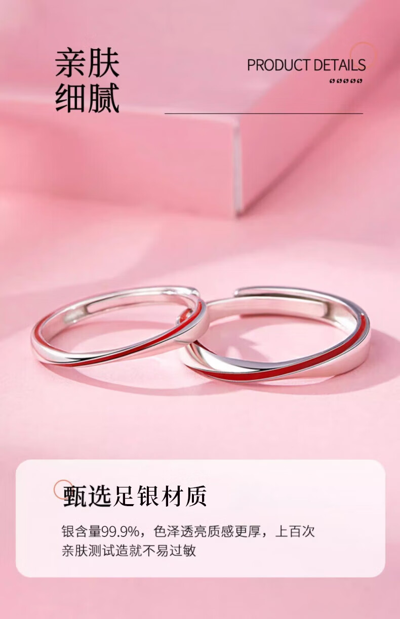 China Gold (CHINA GOLD) Yuelao Red Line Couple Ring Silver Pair of Rings for Men and Women Niche Valentine's Day Birthday Gift for Girlfriend and Wife Yuelao Red Line Couple Ring Heart-beating Gift Box