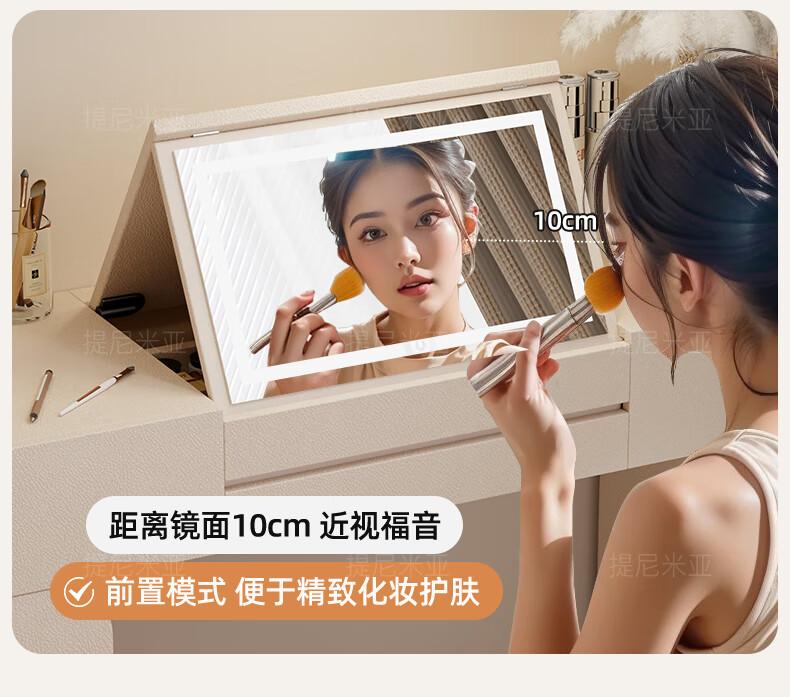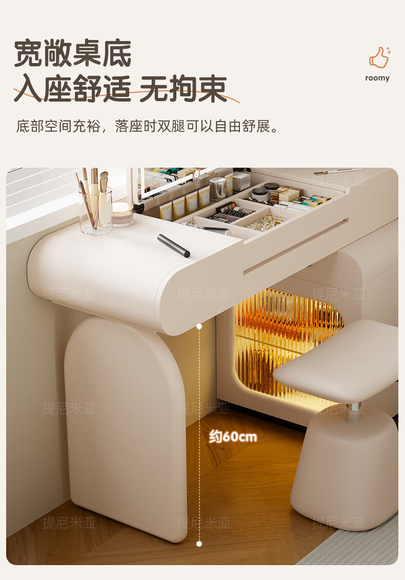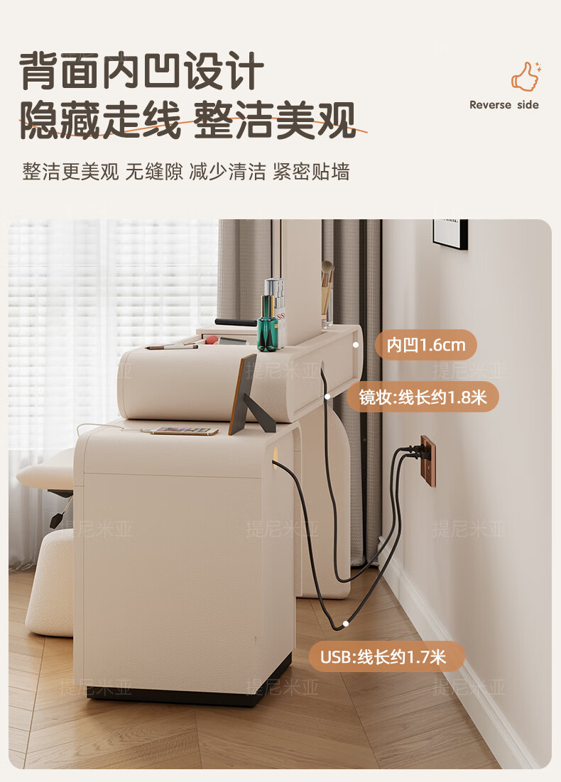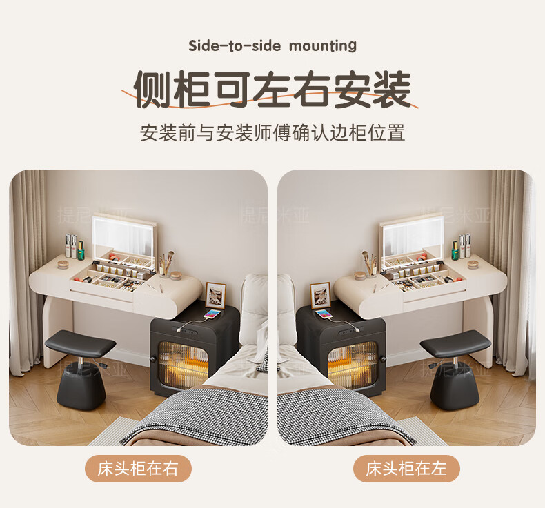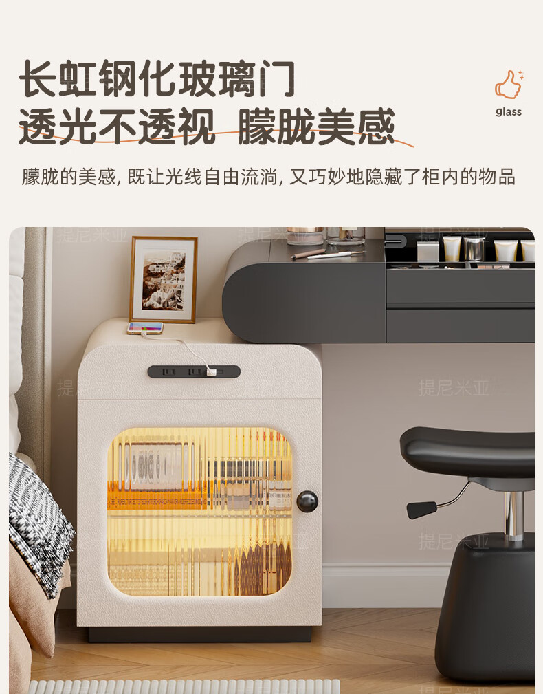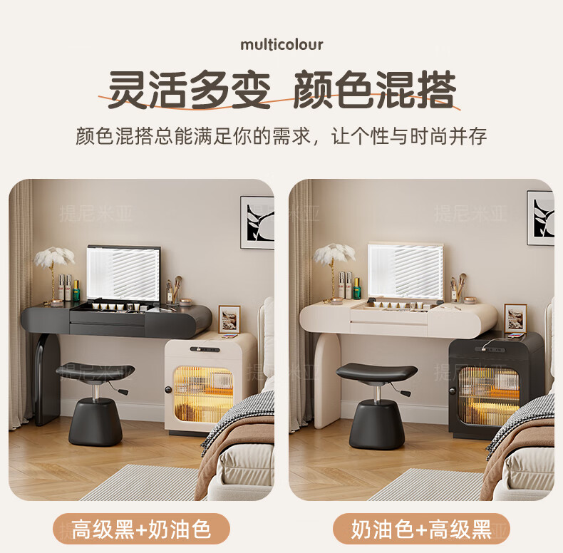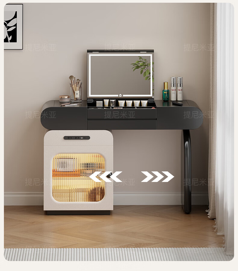 Tinimia dressing table desk two-in-one 2025 new white high-end locker bedroom small apartment bedside table dressing table white丨charging socket-reserved skirting 1.2 meters dressing table + bedside table + lifting stool