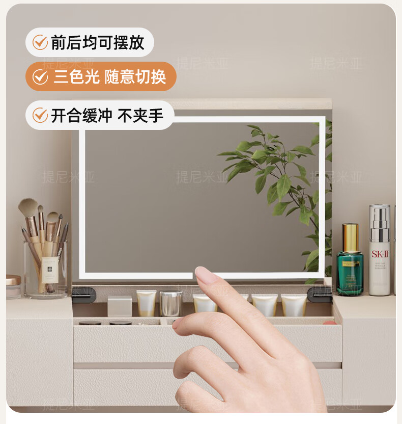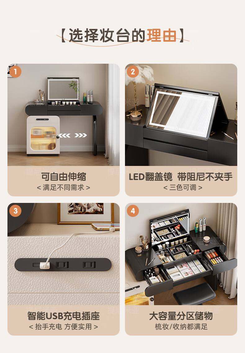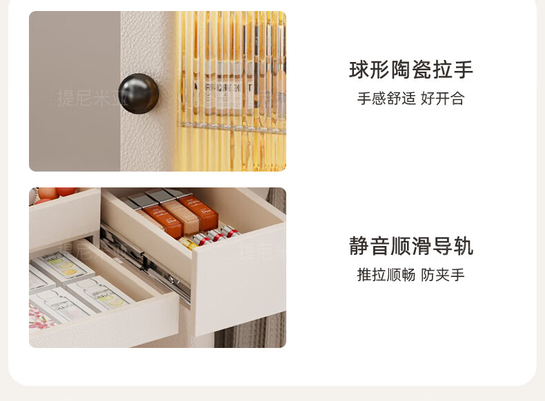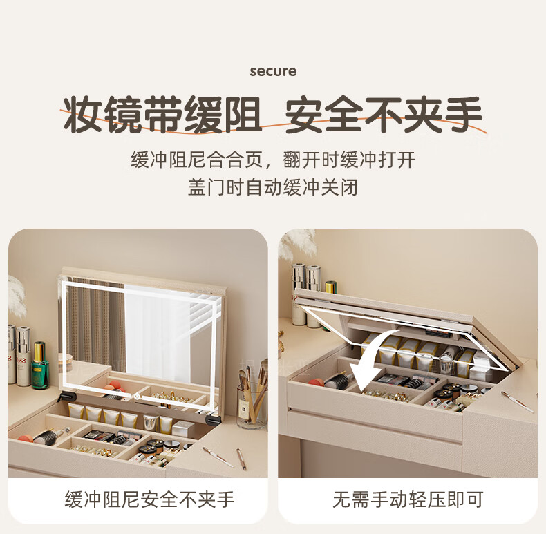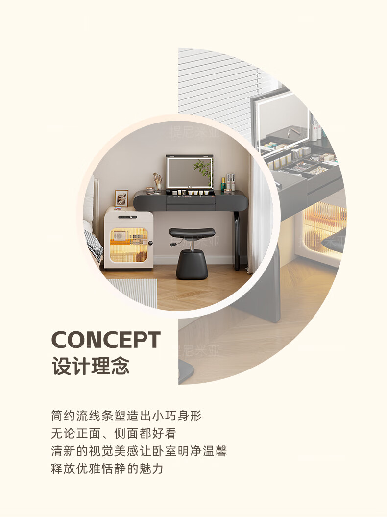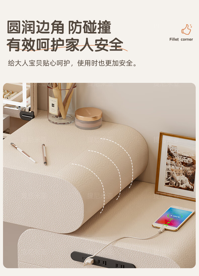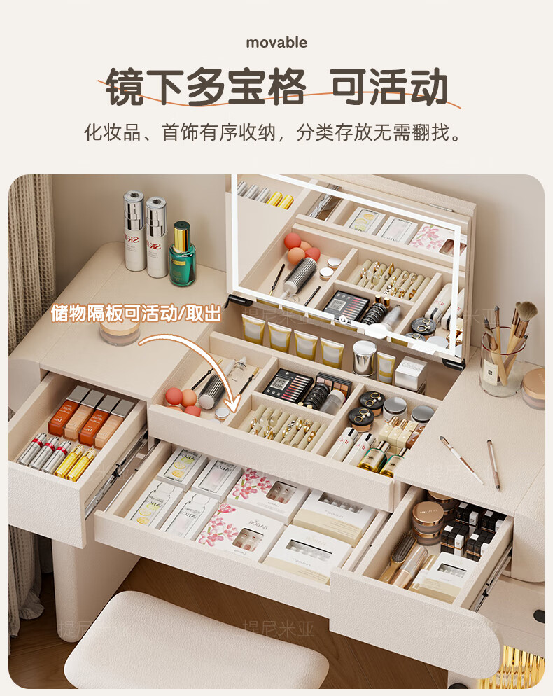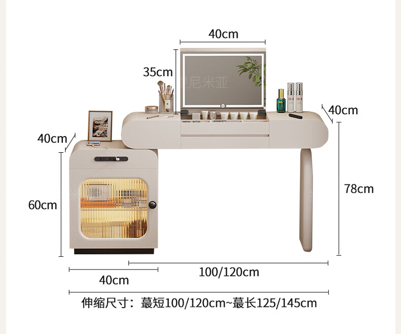 Tinimia dressing table desk two-in-one 2025 new white high-end locker bedroom small apartment bedside table dressing table white丨charging socket-reserved skirting 1.2 meters dressing table + bedside table + lifting stool