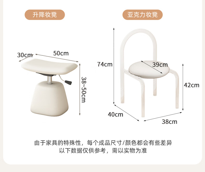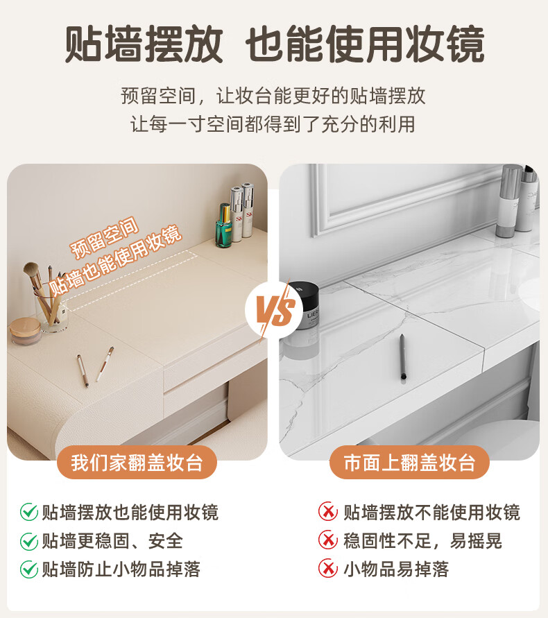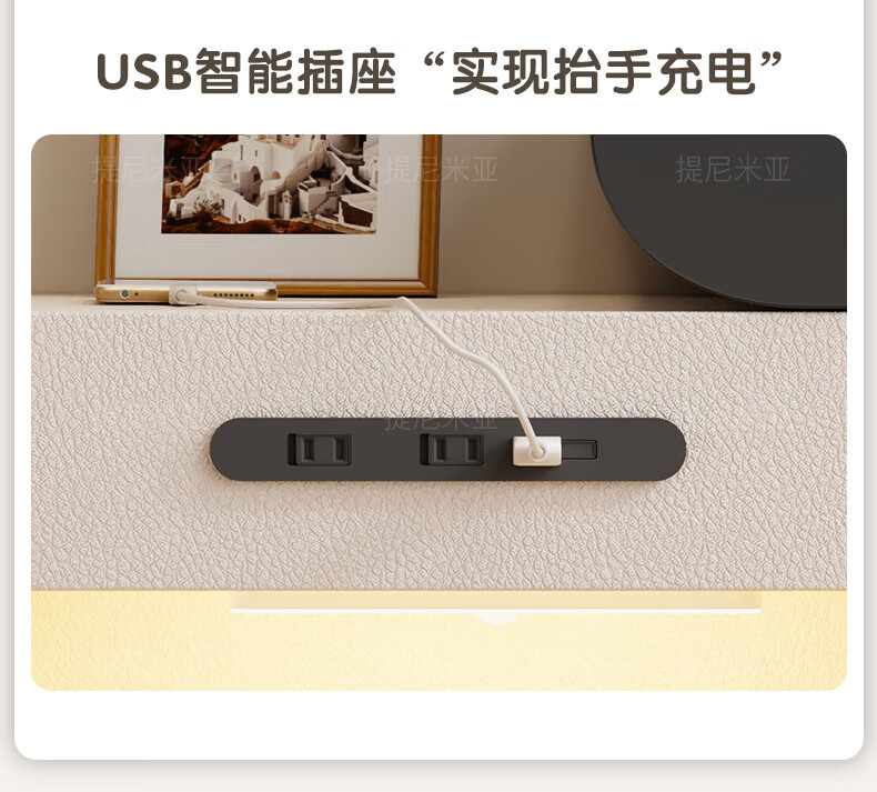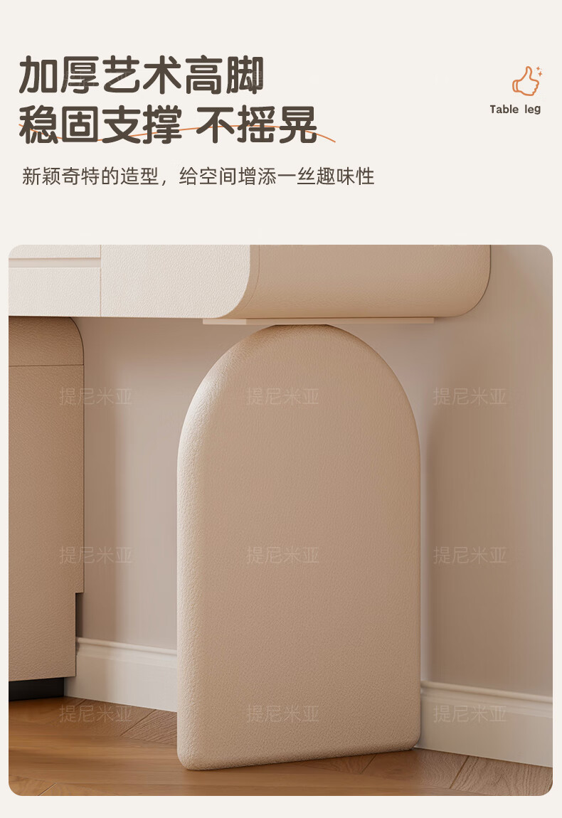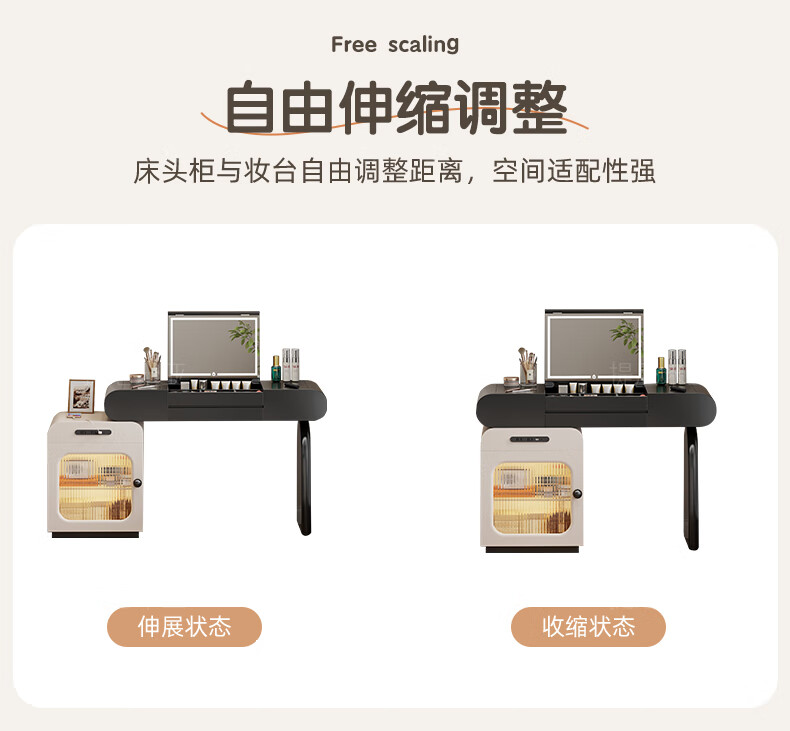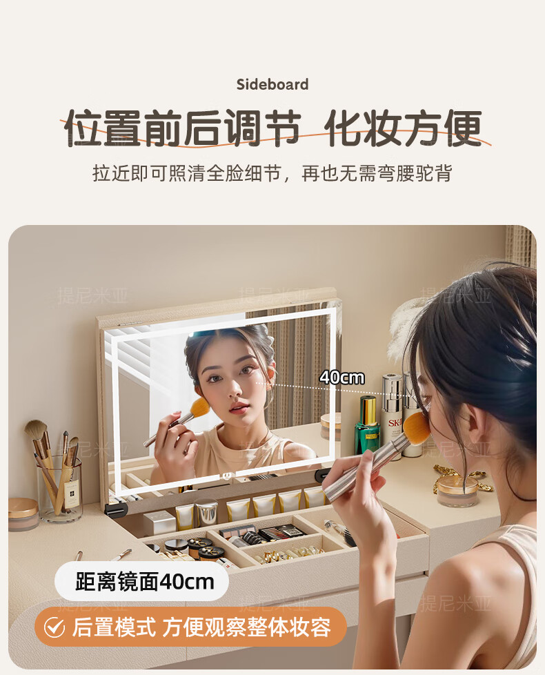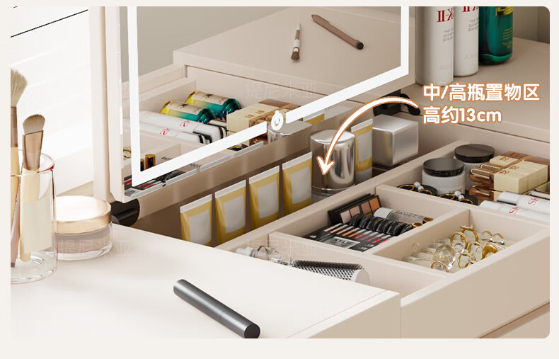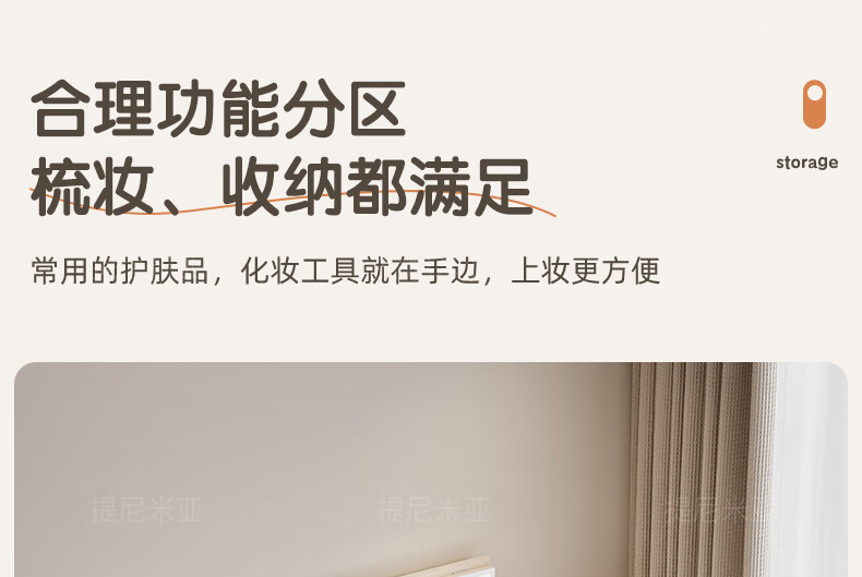 Tinimia dressing table desk two-in-one 2025 new white high-end locker bedroom small apartment bedside table dressing table white丨charging socket-reserved skirting 1.2 meters dressing table + bedside table + lifting stool