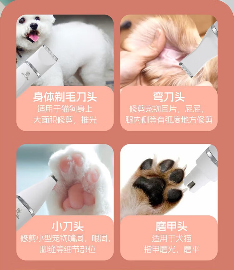 Xuanniao cat shaver, pet clipper, dog shaving artifact, electric clipper, cat and dog all-in-one clipper for trimming and shaving feet, white, 4 uses in one machine, safe bass, does not hurt skin