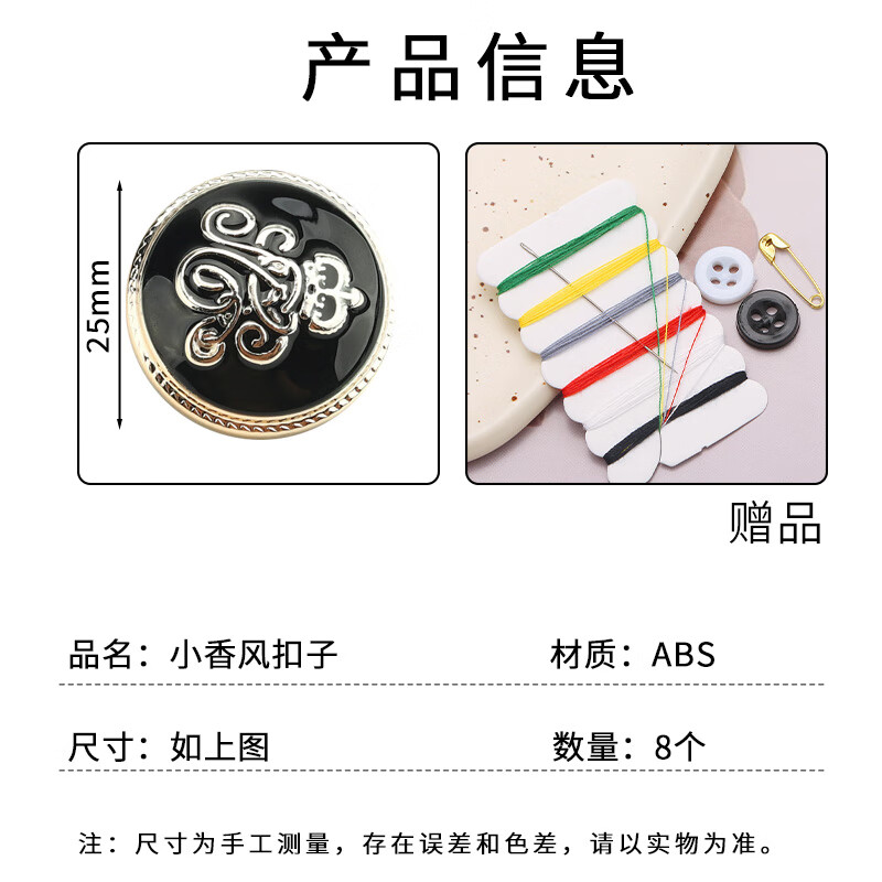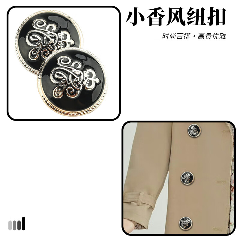 Suican Xiaoxiang style buttons, Baita coat buttons, high-end sweater, cardigan, shirt, suit button, pajamas decorative button, 25mm gold twist button, 8 pieces