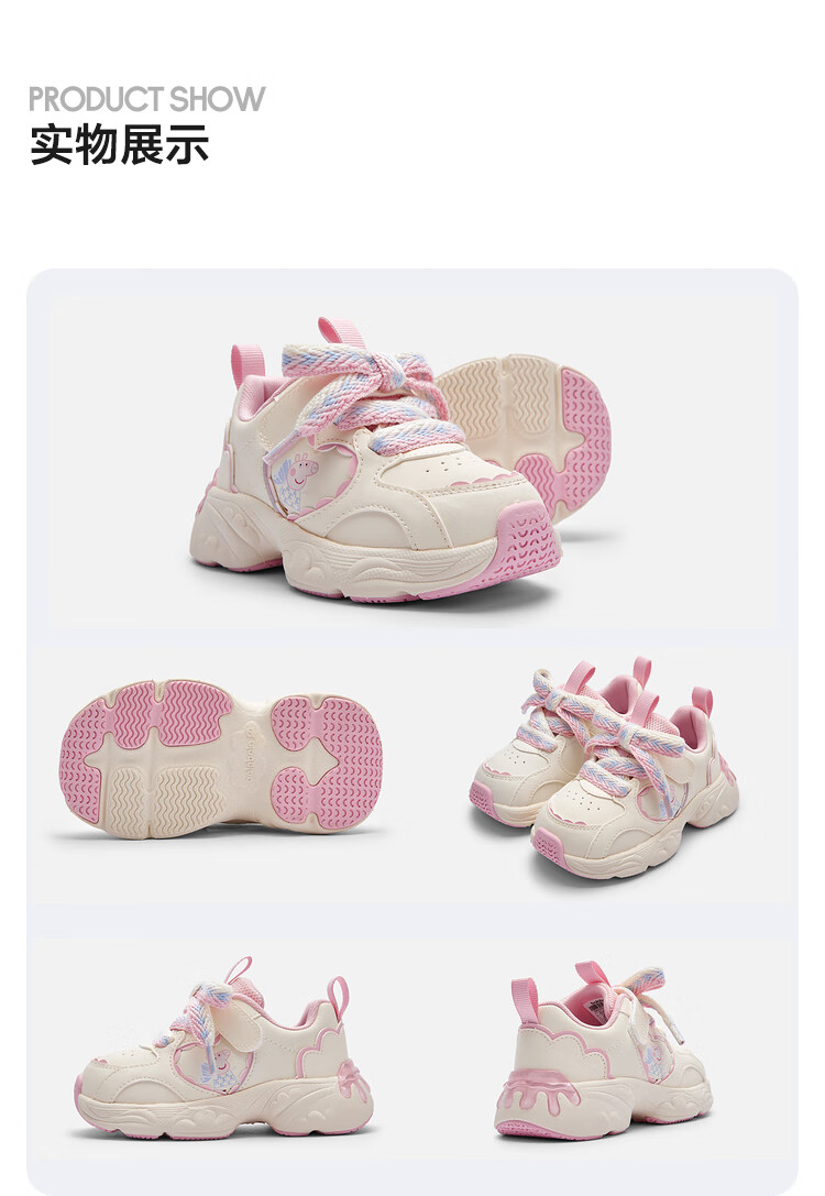 Balabala Baby Stable Shoes Girls' Sports Shoes Spring and Autumn 2025 New Piggy Peppa Pig IP Mall Same Style Off-White 10301 Size 23 (Foot Length 13.8-14.2/Inner Length 15.2)