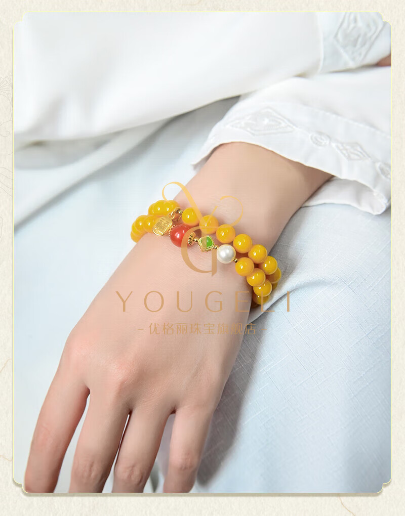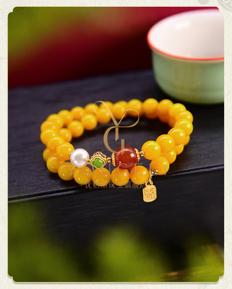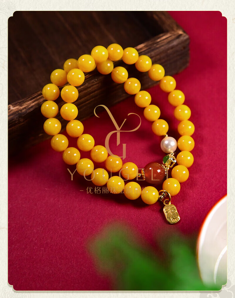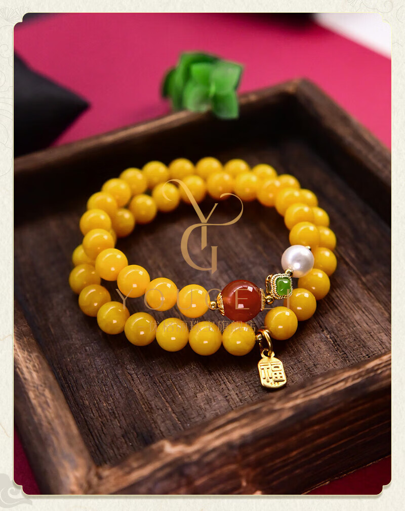 Yogurt Natural Beeswax Bracelet Chicken Fat Yellow Amber Multi-circle Bracelet Chinese Style National Style Jewelry Women's Hand Jewelry Beads 8mm