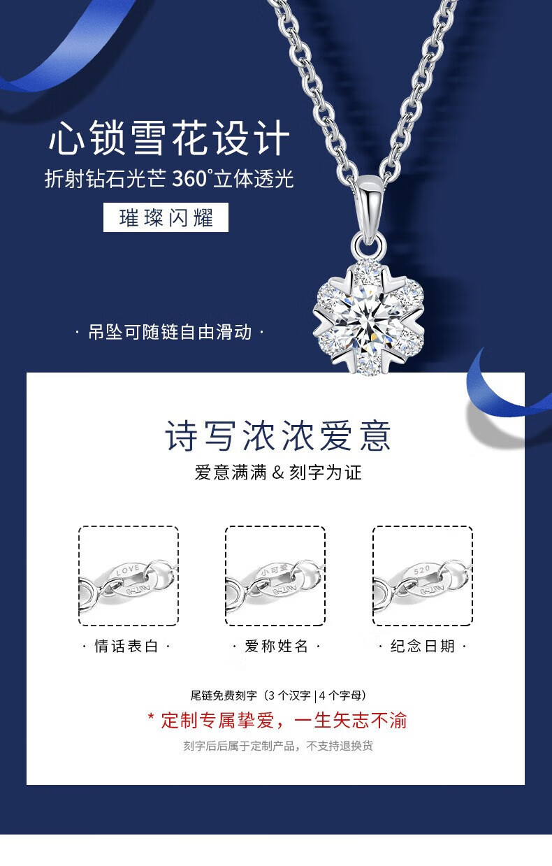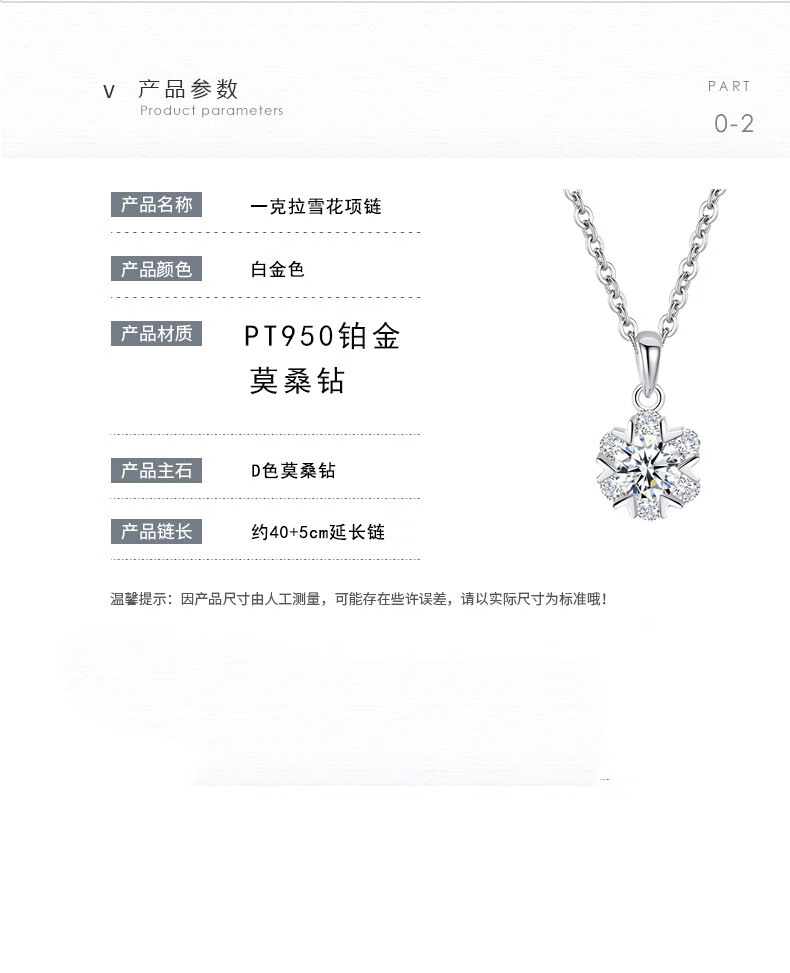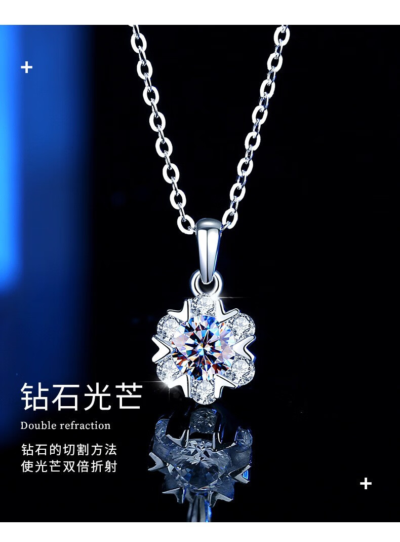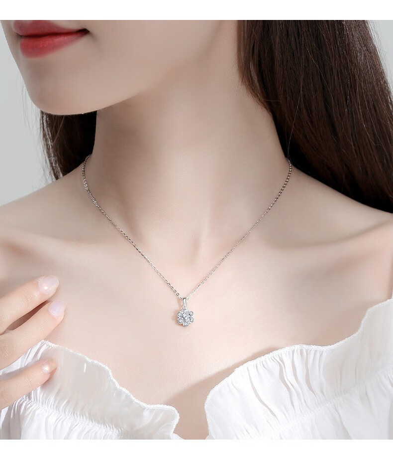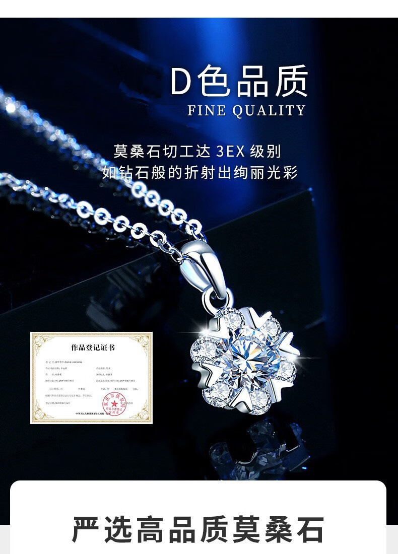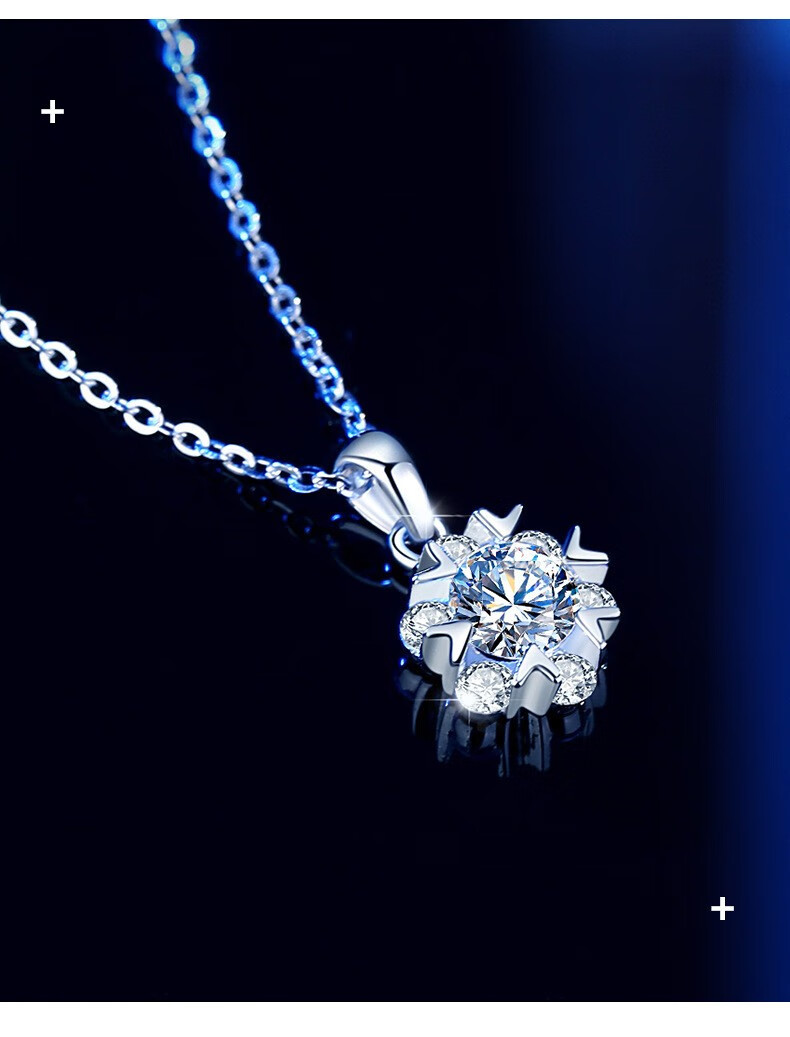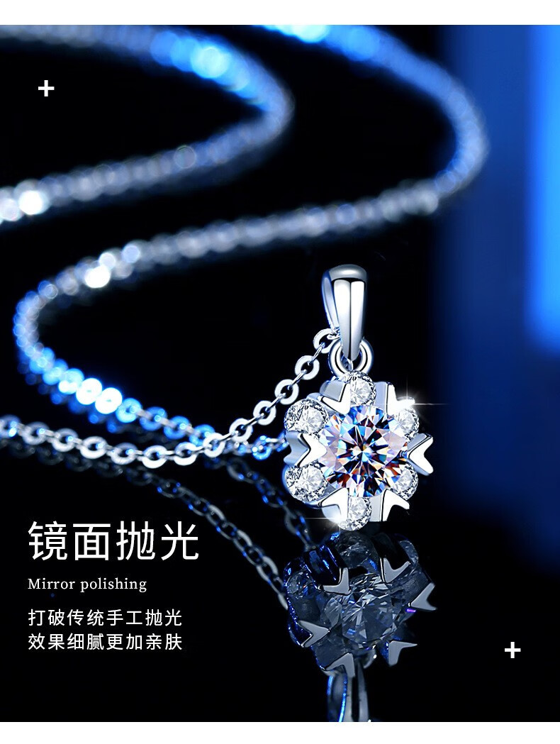 Grace Girl Platinum Snowflake Necklace for Women One Carat Moissanite Pendant Practical Heartfelt Birthday Gift for Girlfriend and Wife Platinum One Carat Romantic Snowflake Necklace