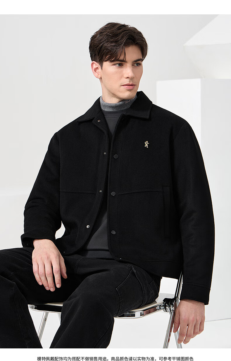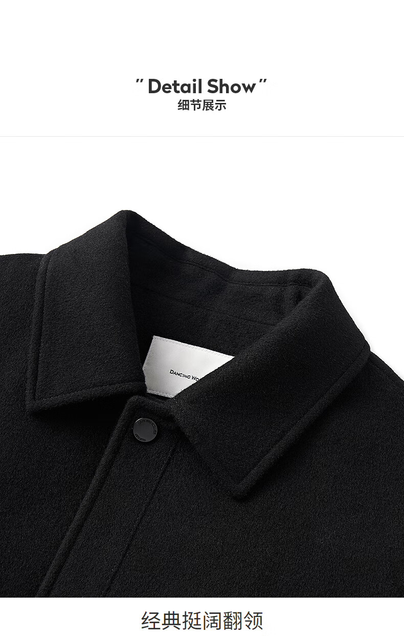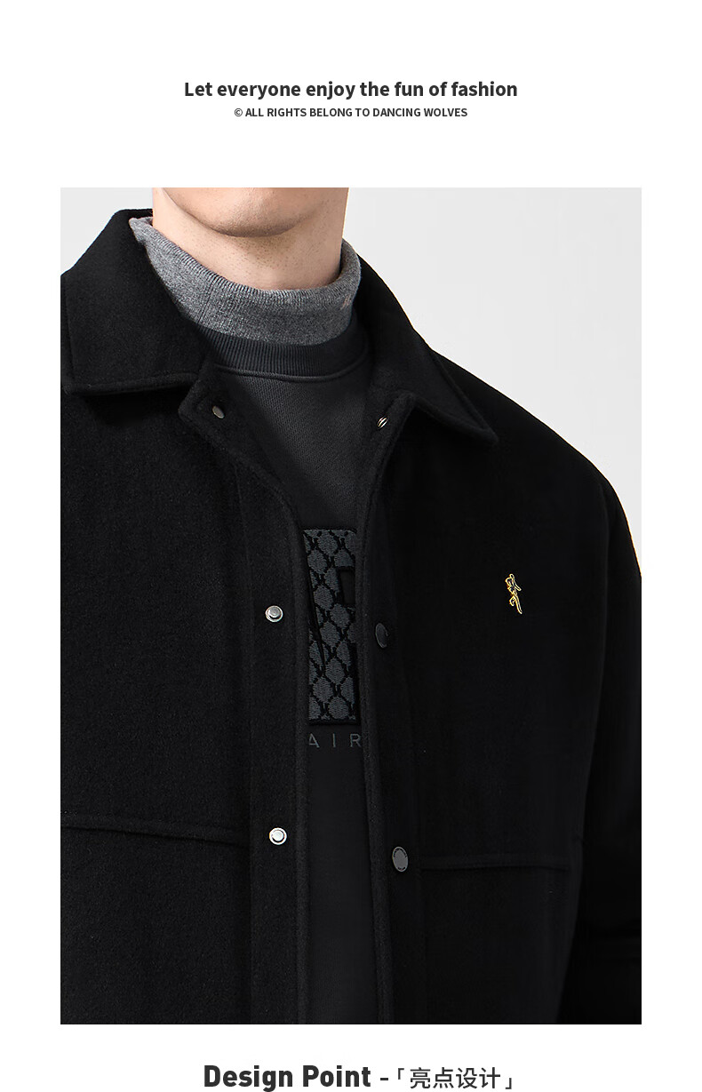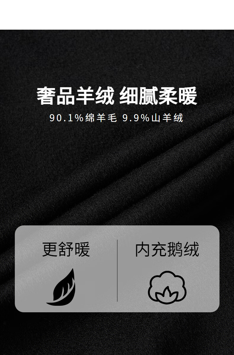 Dances with Wolves Cashmere + Sheep Wool Goose Down Liner Technology Temperature Locking Lapel Wool Thick Jacket Men's Down Jacket Black 180