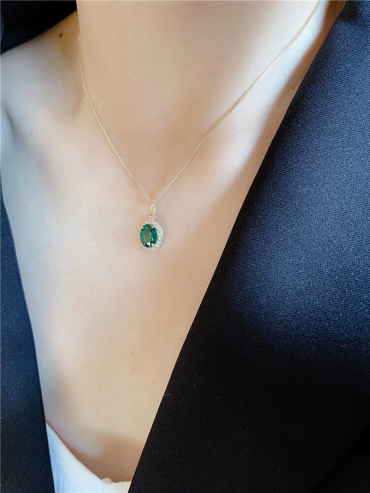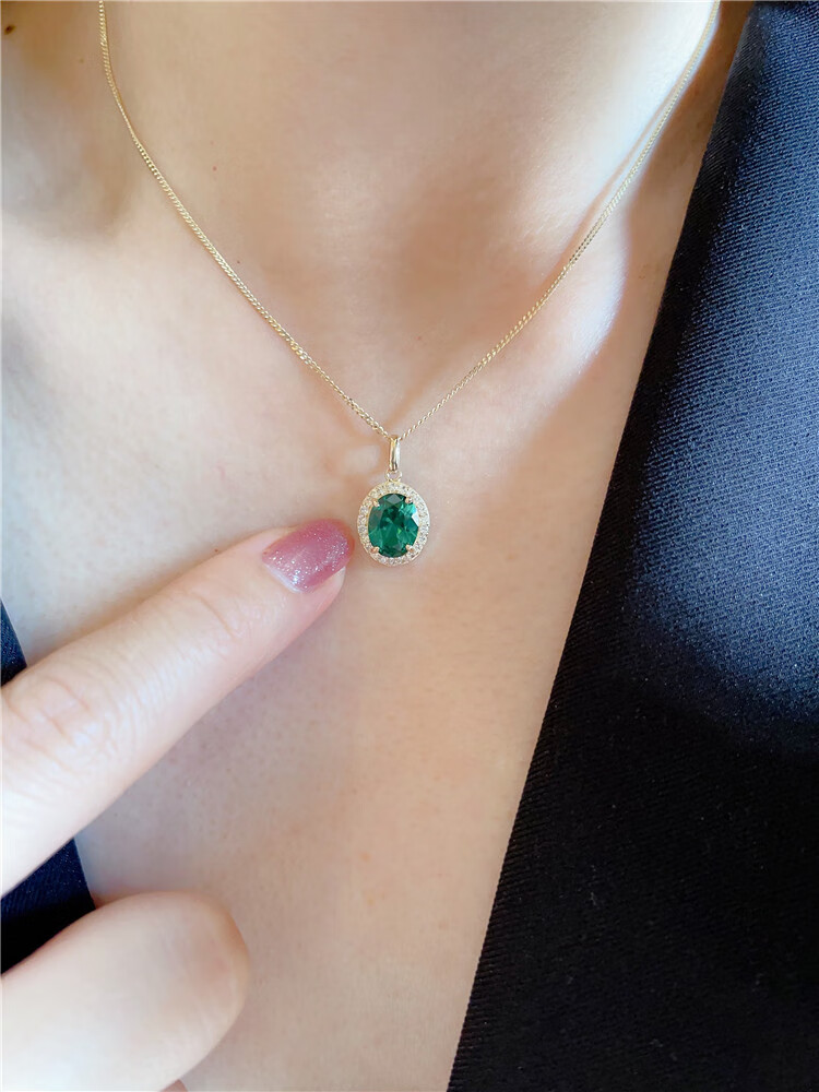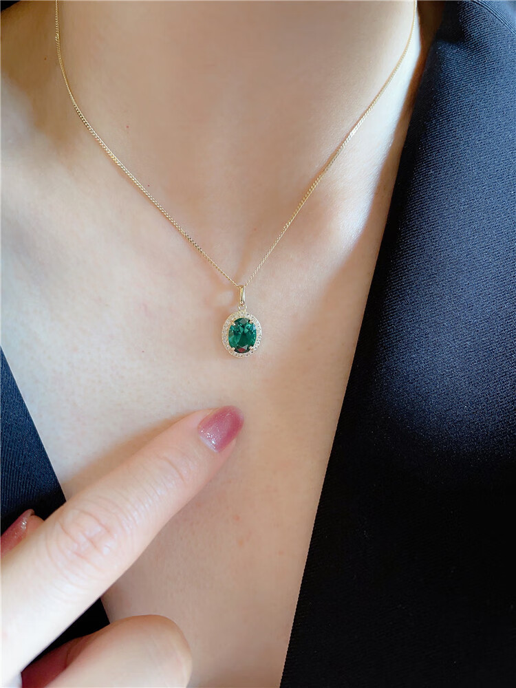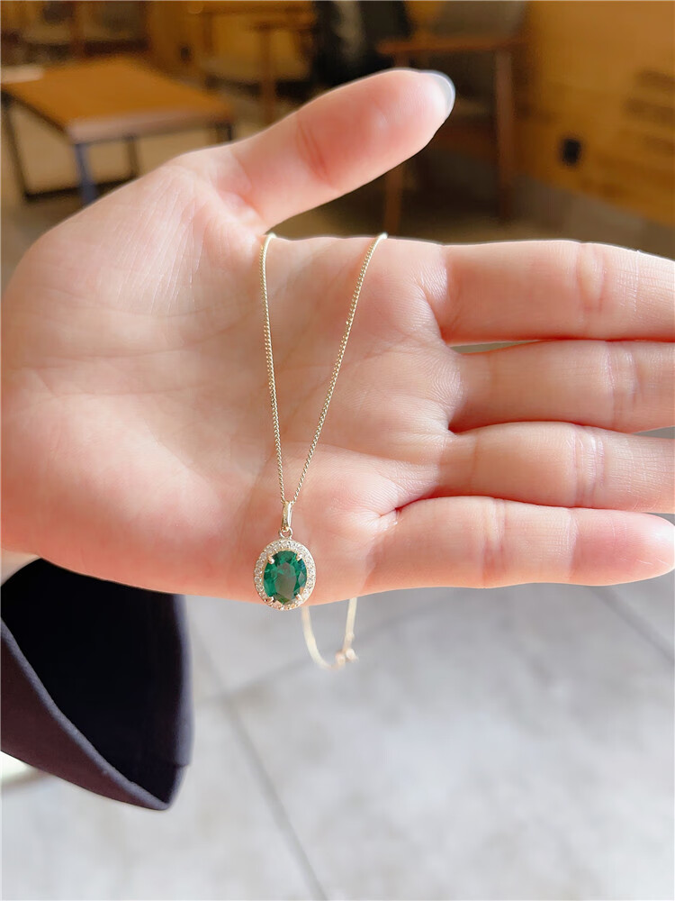 Caizhi white small C Korean gold 14K gold necklace retro personalized oval large green zirconium diamond pendant clavicle chain separate pendant one without chain