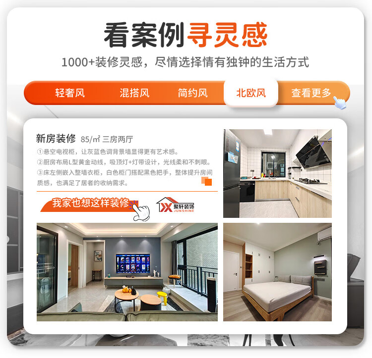 Juxuan Decoration full package decoration design renderings whole house decoration package home decoration one-stop decoration service home privilege card decoration deposit