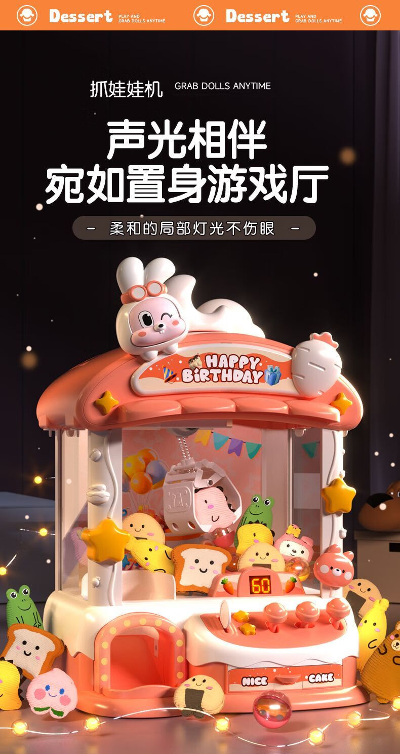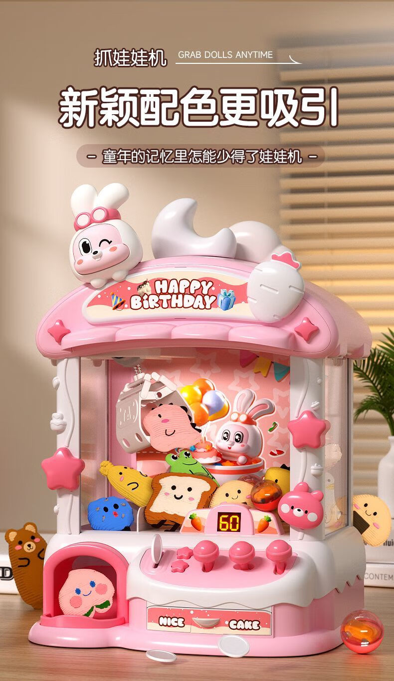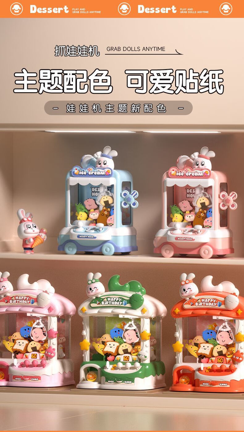 Timminy's new claw machine large coin-operated clip doll gashapon machine mini play house children's toy girl gift ice cream rabbit blue 10 babies 10 eggs