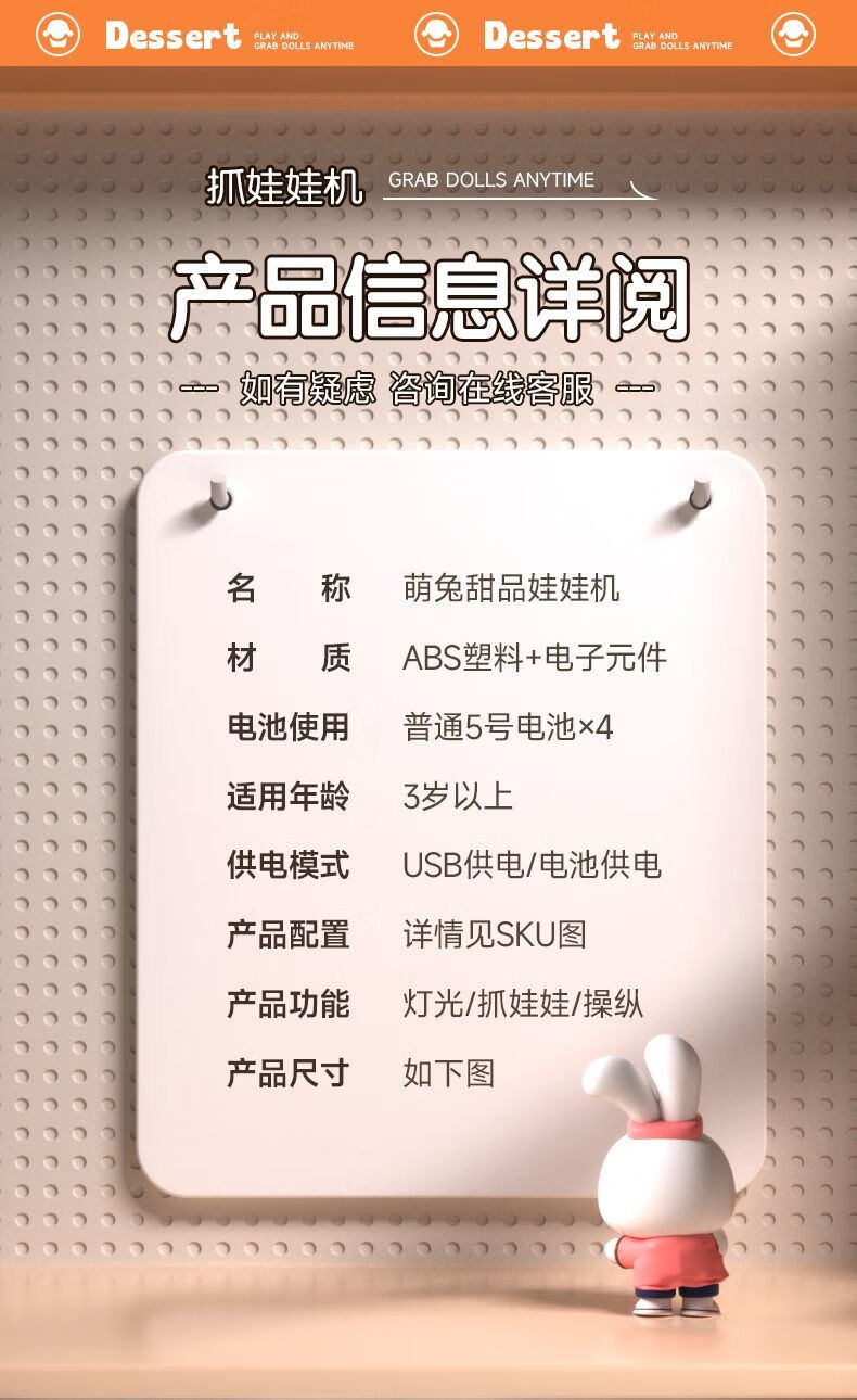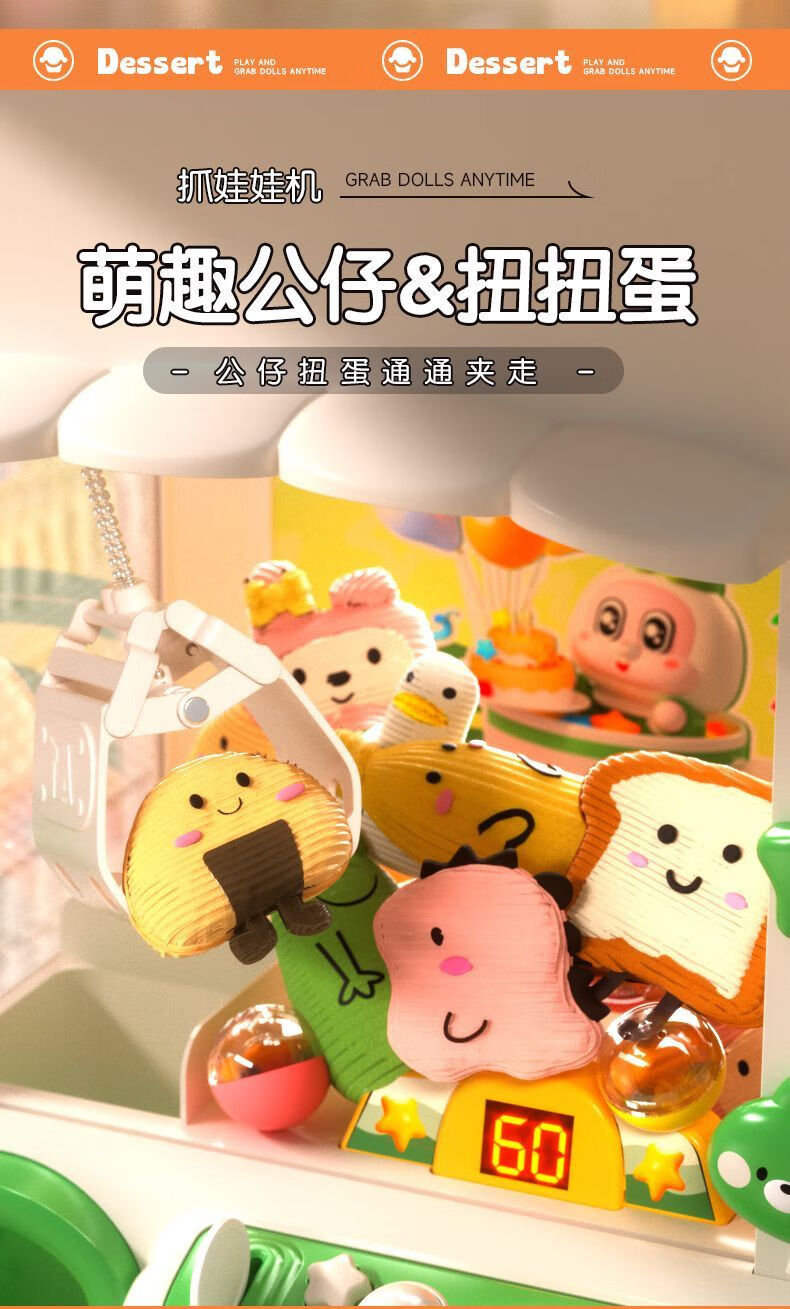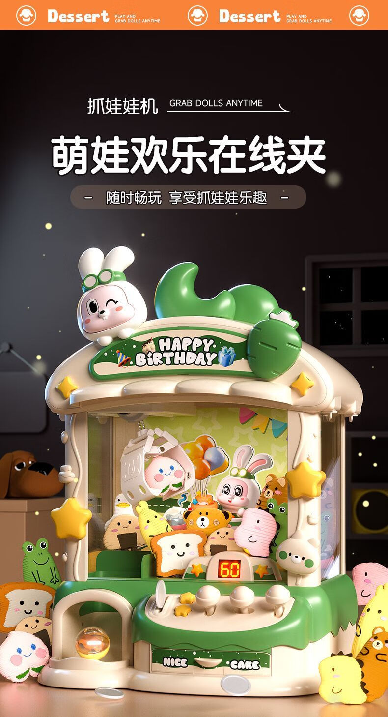 Timminy's new claw machine large coin-operated clip doll gashapon machine mini play house children's toy girl gift ice cream rabbit blue 10 babies 10 eggs