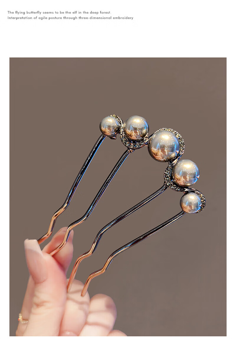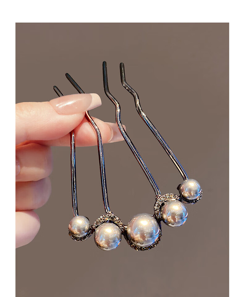 Danqin Maruzi hairpin hairpin fixed hairpin female U-shaped hairpin hairpin hairpin hairpin comb pearl headdress gold + gun black