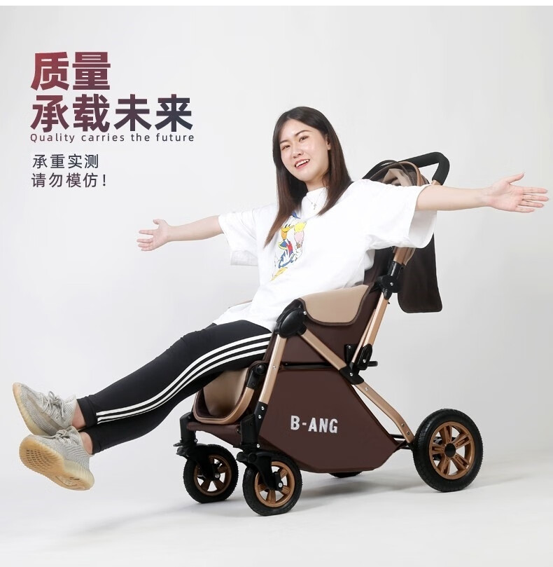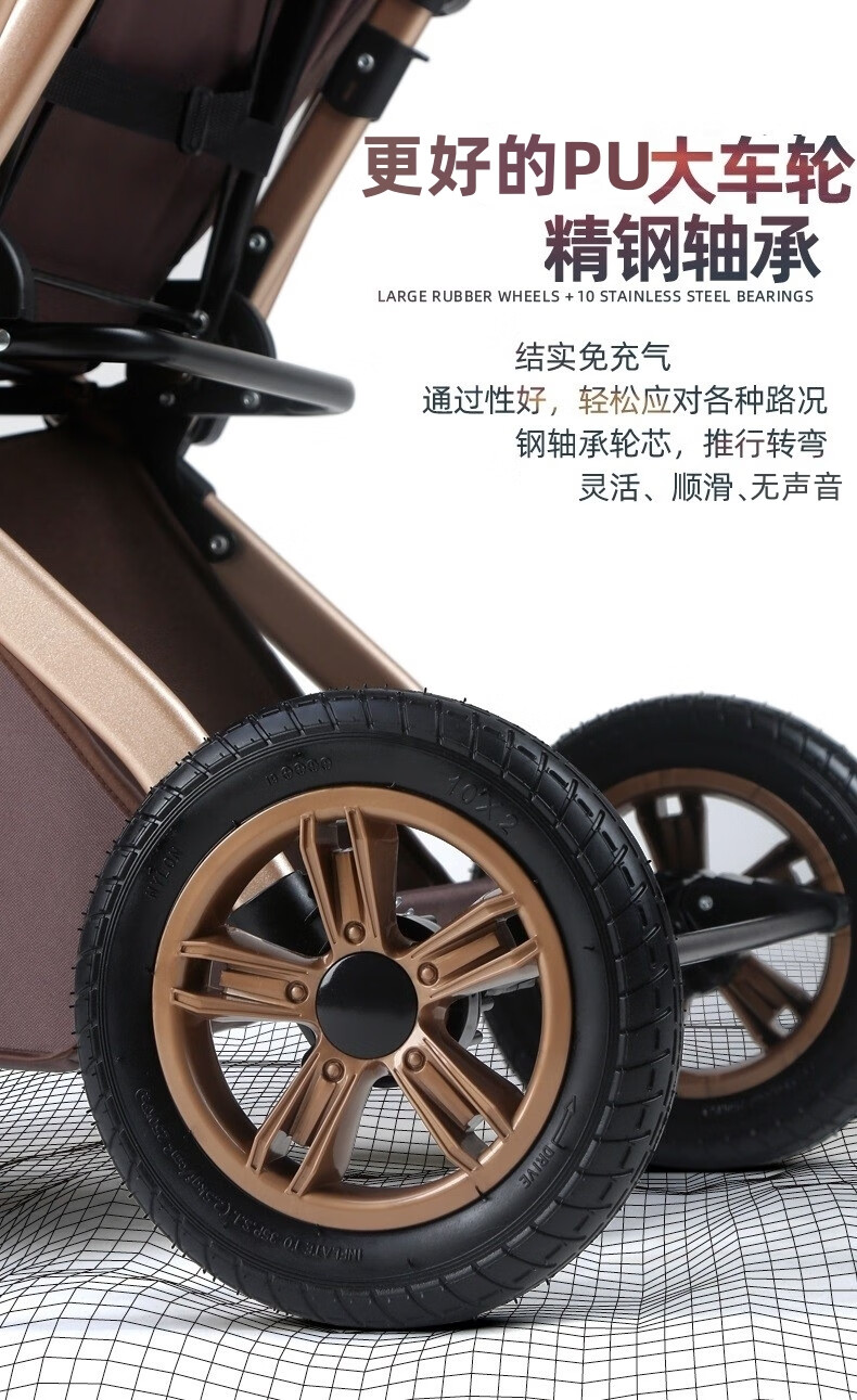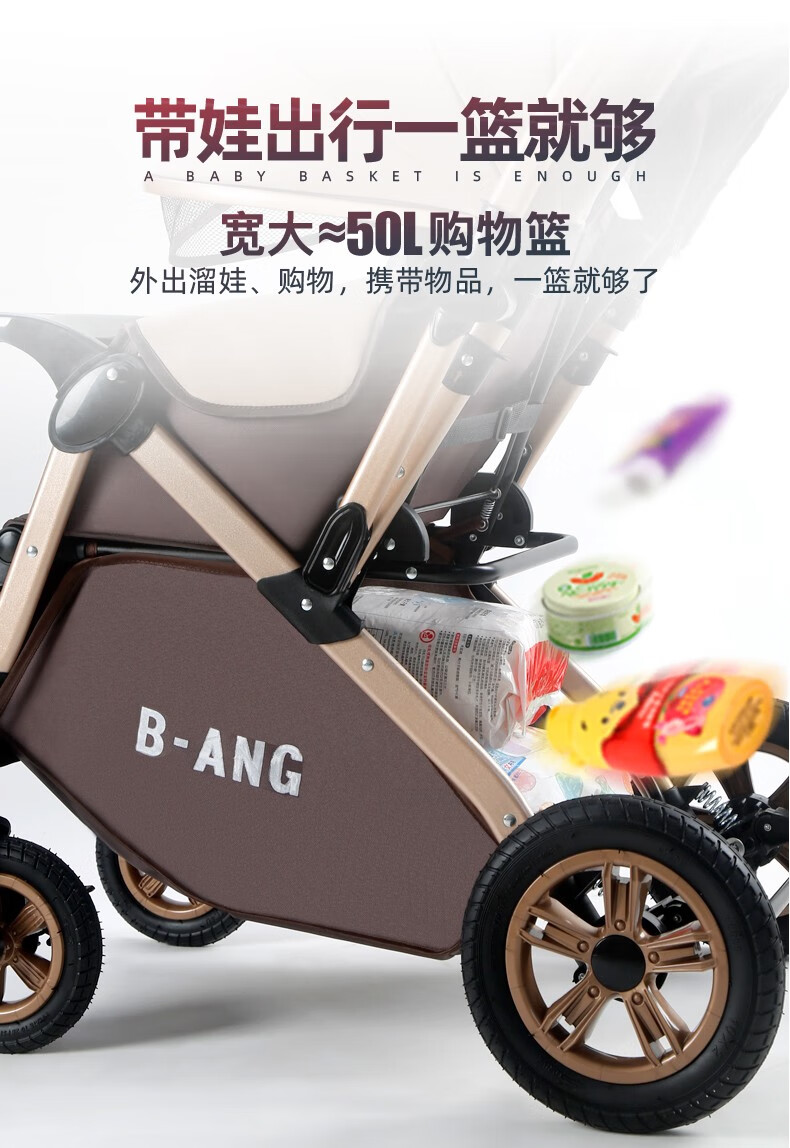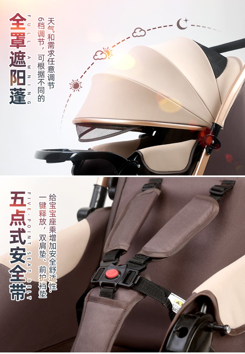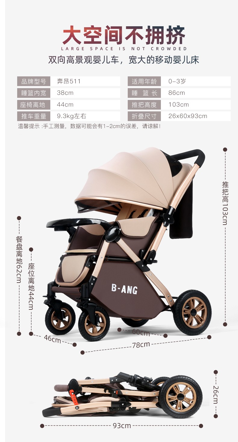 Benang Kinderwagen kann sitzen und liegen, leichter stoßdämpfender Klappkinderwagen, Zwei-Wege-BB-Kinderwagen, verbessertes Khaki + Ein-Knopf-Einhandklappung + kann sitzen und liegen + Zwei-Wege-Schieben + Vierrad-Hochkonfiguration