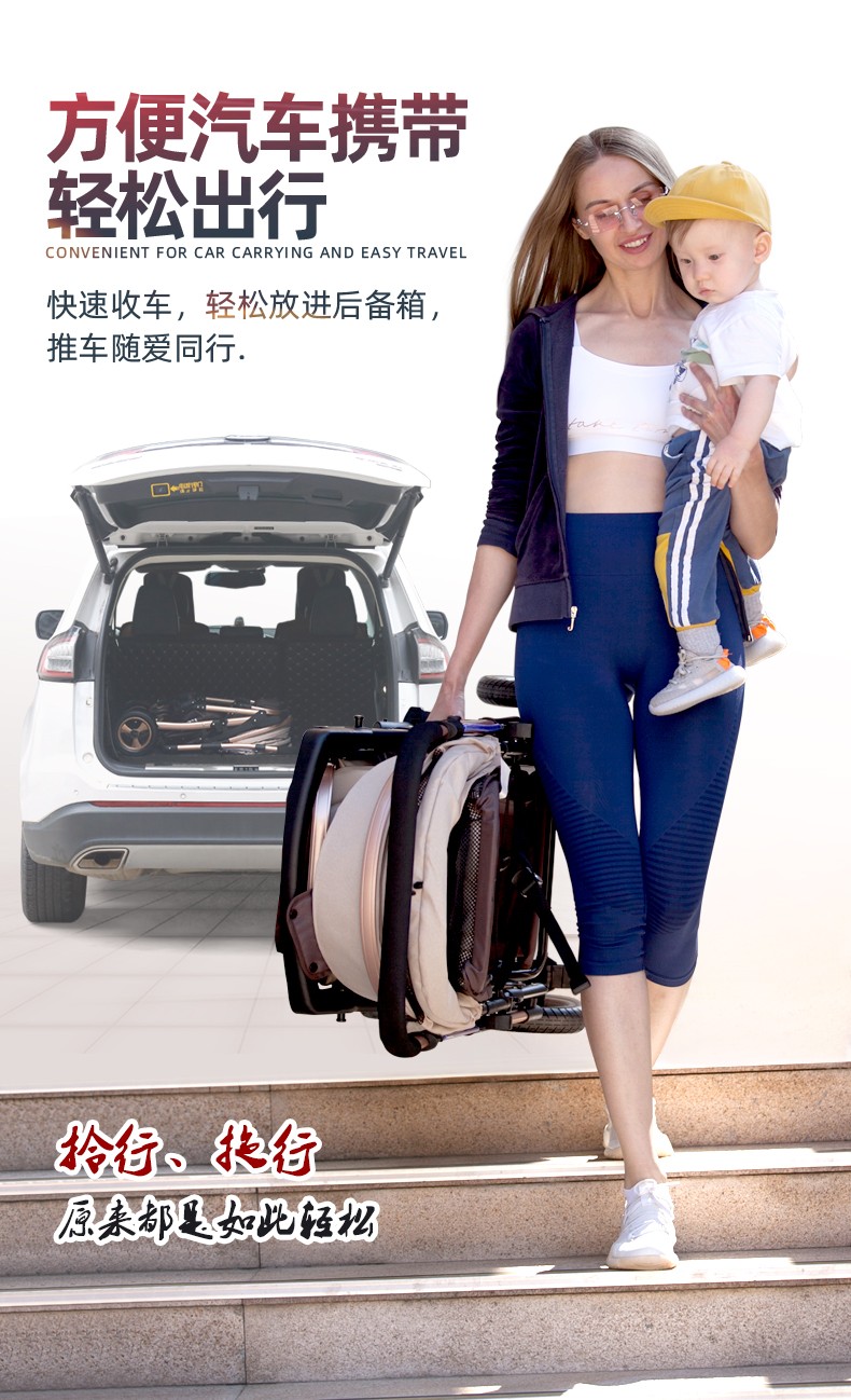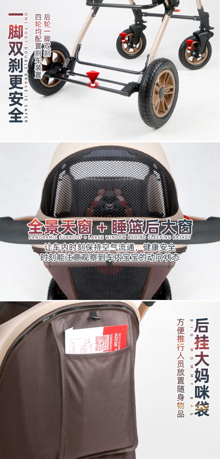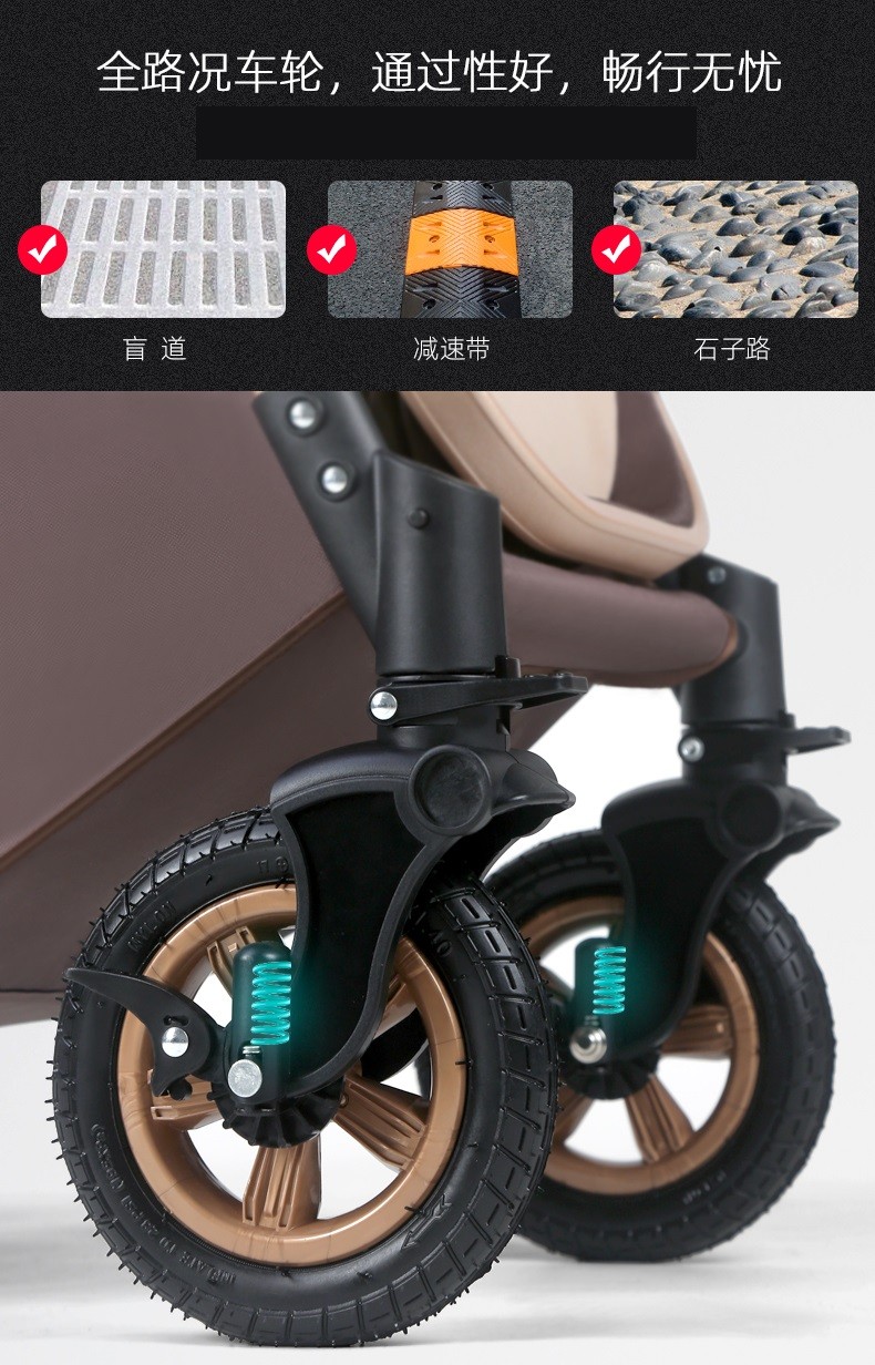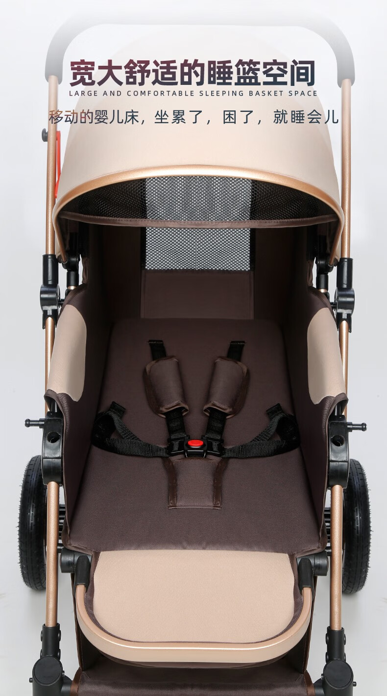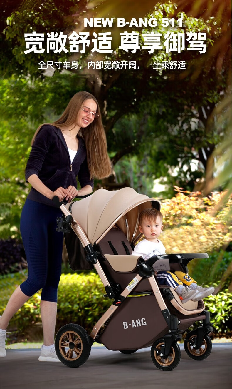Benang Kinderwagen kann sitzen und liegen, leichter stoßdämpfender Klappkinderwagen, Zwei-Wege-BB-Kinderwagen, verbessertes Khaki + Ein-Knopf-Einhandklappung + kann sitzen und liegen + Zwei-Wege-Schieben + Vierrad-Hochkonfiguration