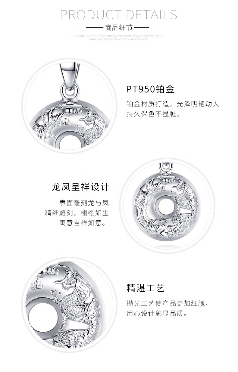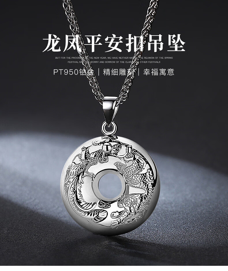 Miss JuJuMiss JuJu platinum pendant for men pt950 platinum dragon and phoenix safety buckle pendant ring necklace for women, weight 2.9-3.1g + with black leather rope