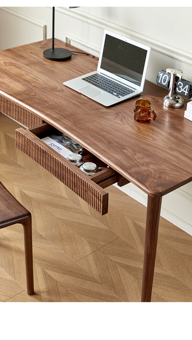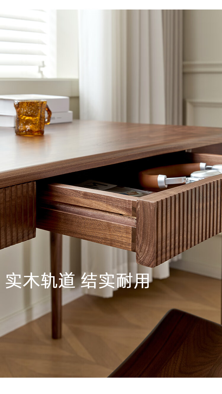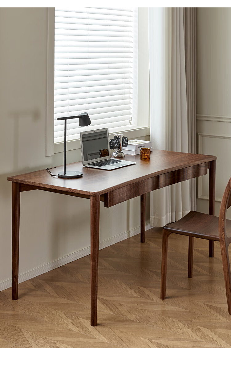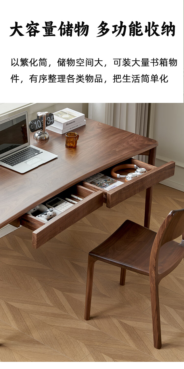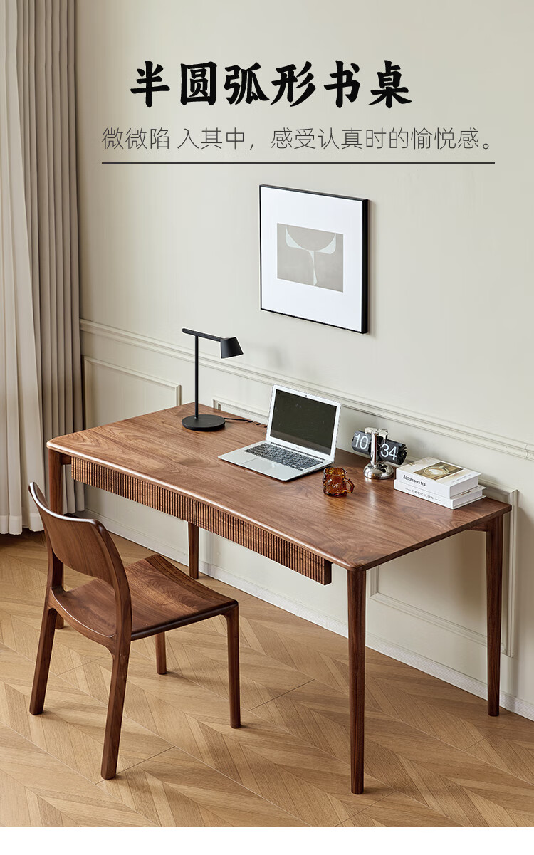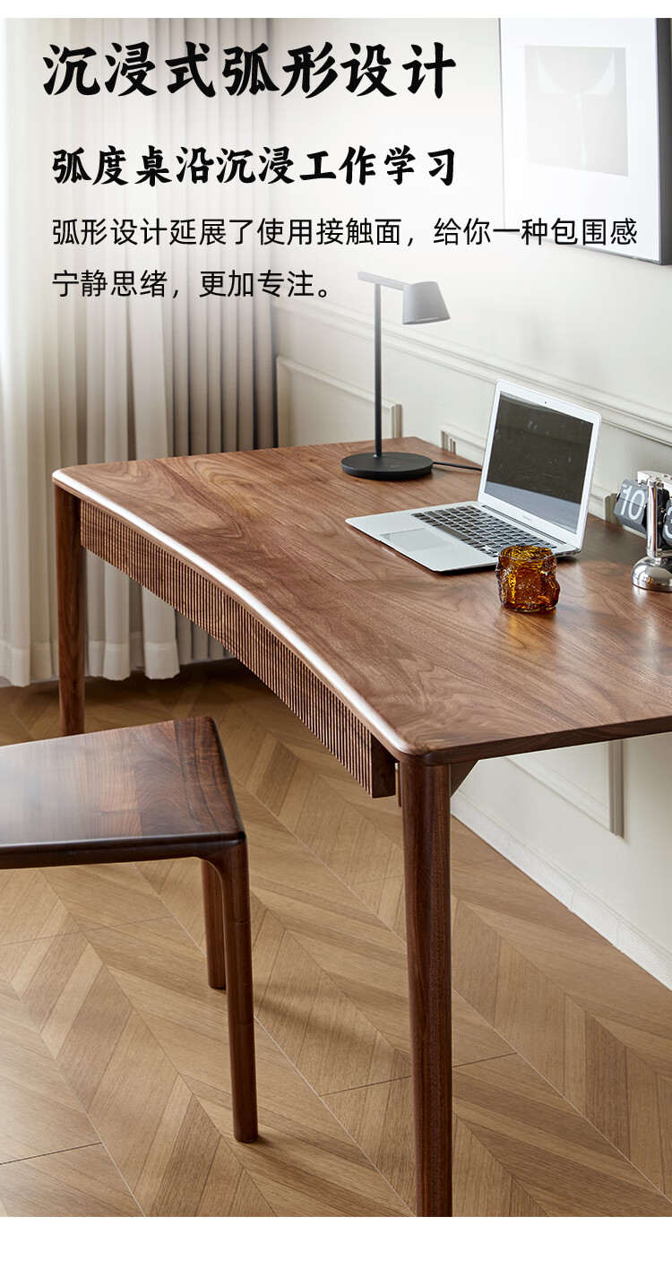 Jinjiang Chuancheng North American black walnut desk and chair all solid wood curved home office computer desk modern study desk 120*60*75cm desk + chair