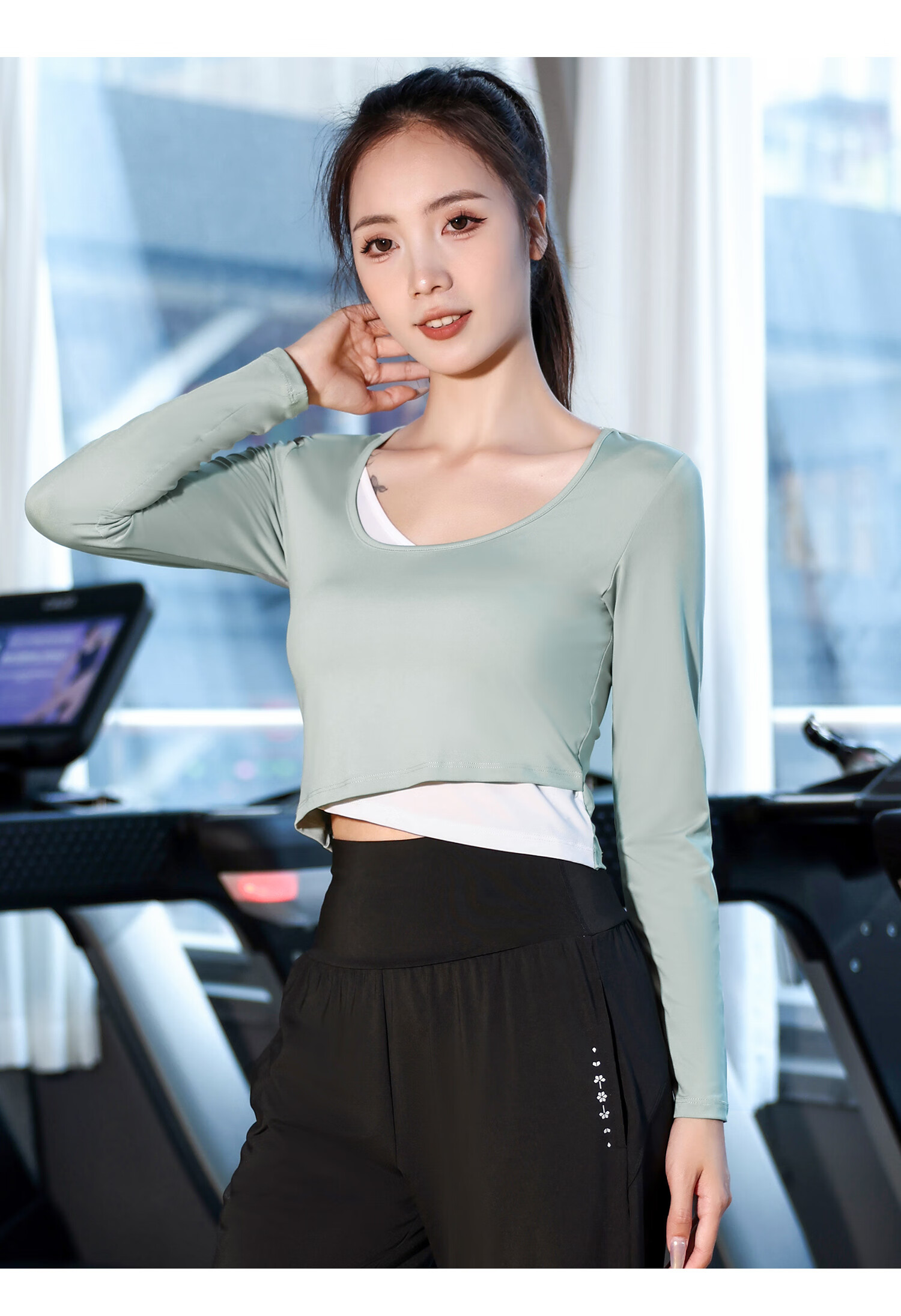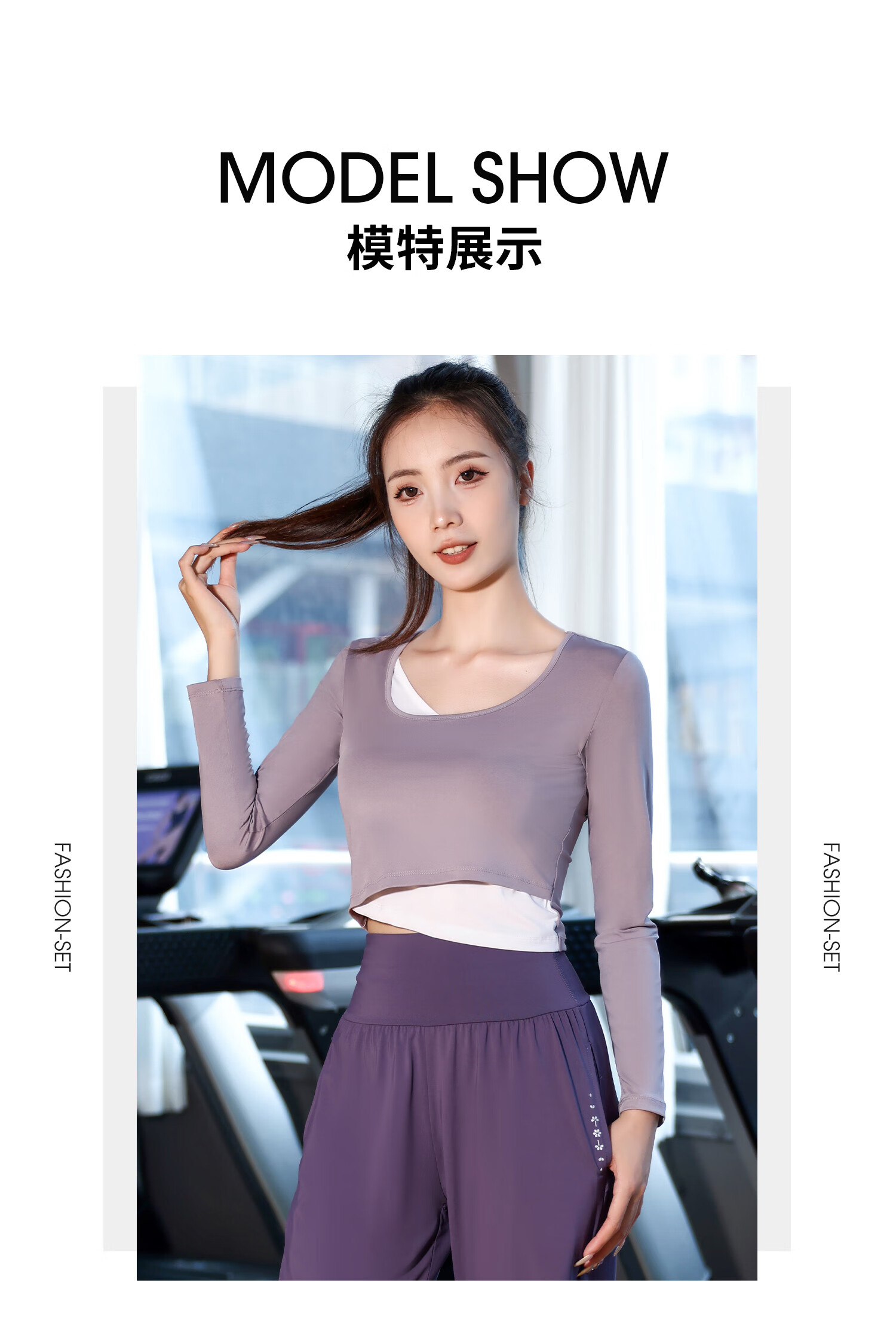 Best velvet fake two-piece quick-drying long-sleeved women's casual autumn and winter professional Pilates loose breathable professional yoga clothing set pink three-piece set (black pants) M