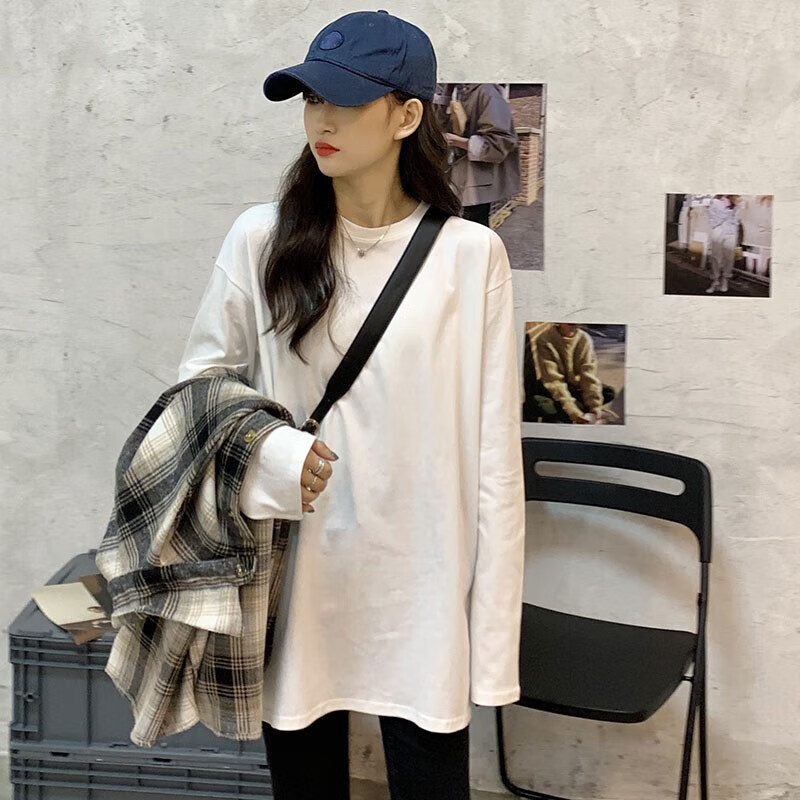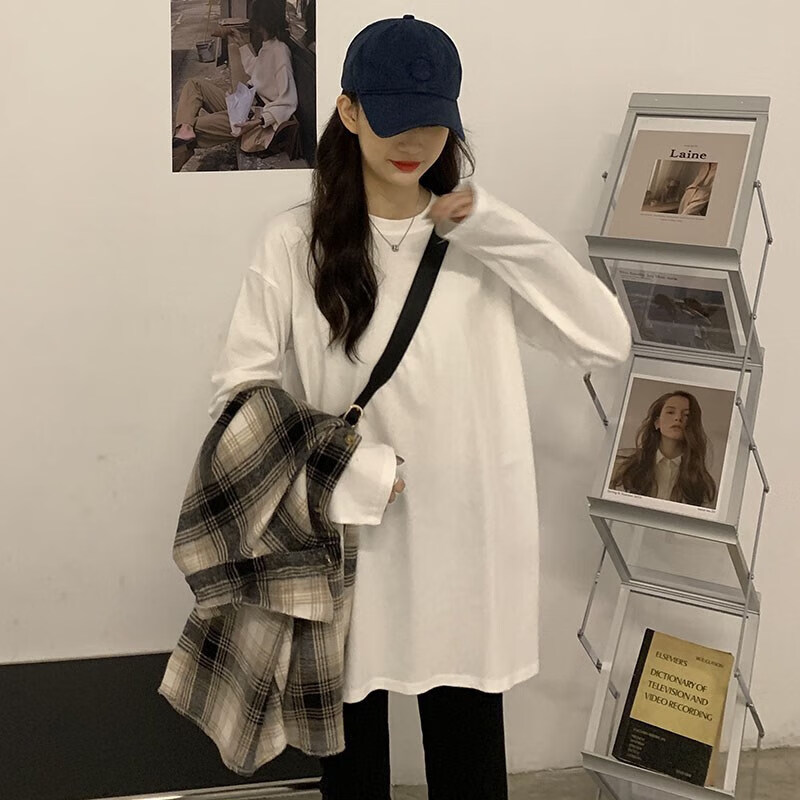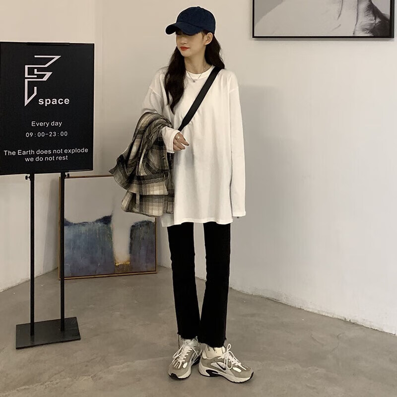 JIOESC long-sleeved t-shirt women's white Korean style loose bottoming shirt 2024 spring and autumn new style pure white top can be worn outside white long-sleeved M recommended 90-110Jin Jin equals 0.5 kg