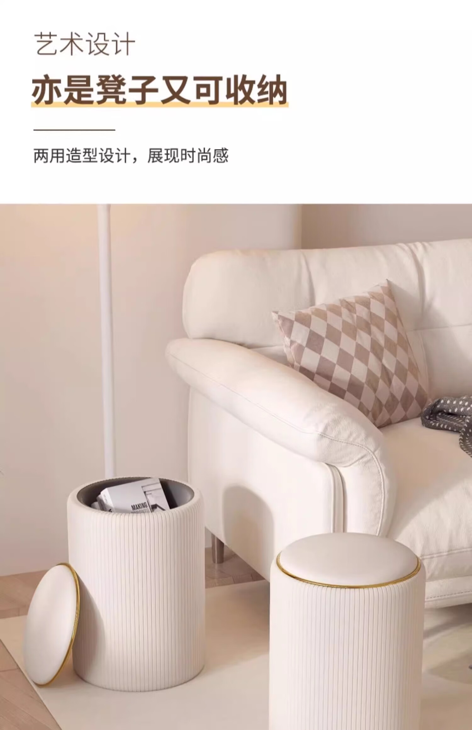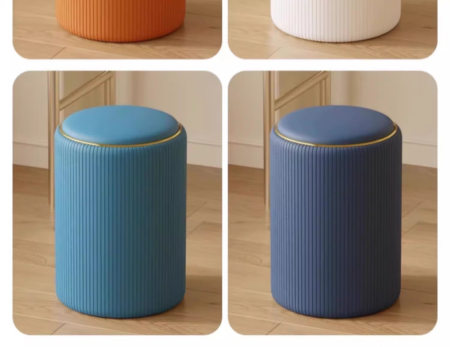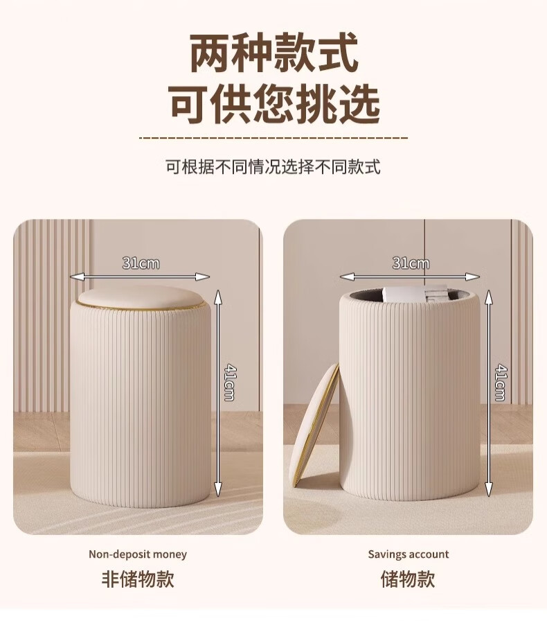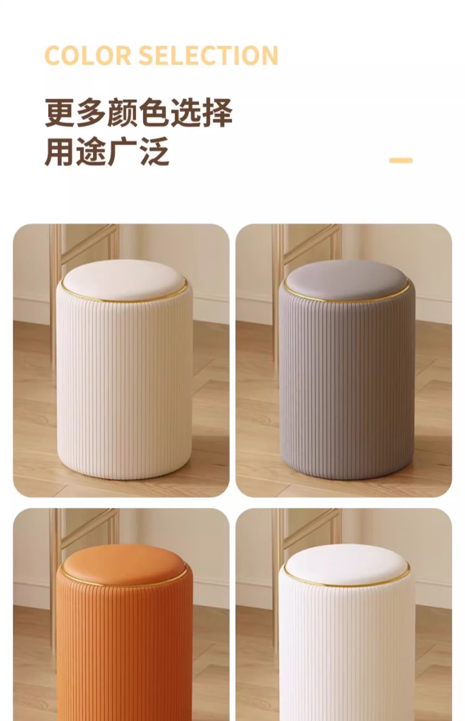 Titian Storage Dressing Stool Storage Round Stool Dressing Table Stool Changing Shoes Light Luxury Living Room Sofa Tea Table Stool Home Small Stool No Storage Beige Vertical Line Leather