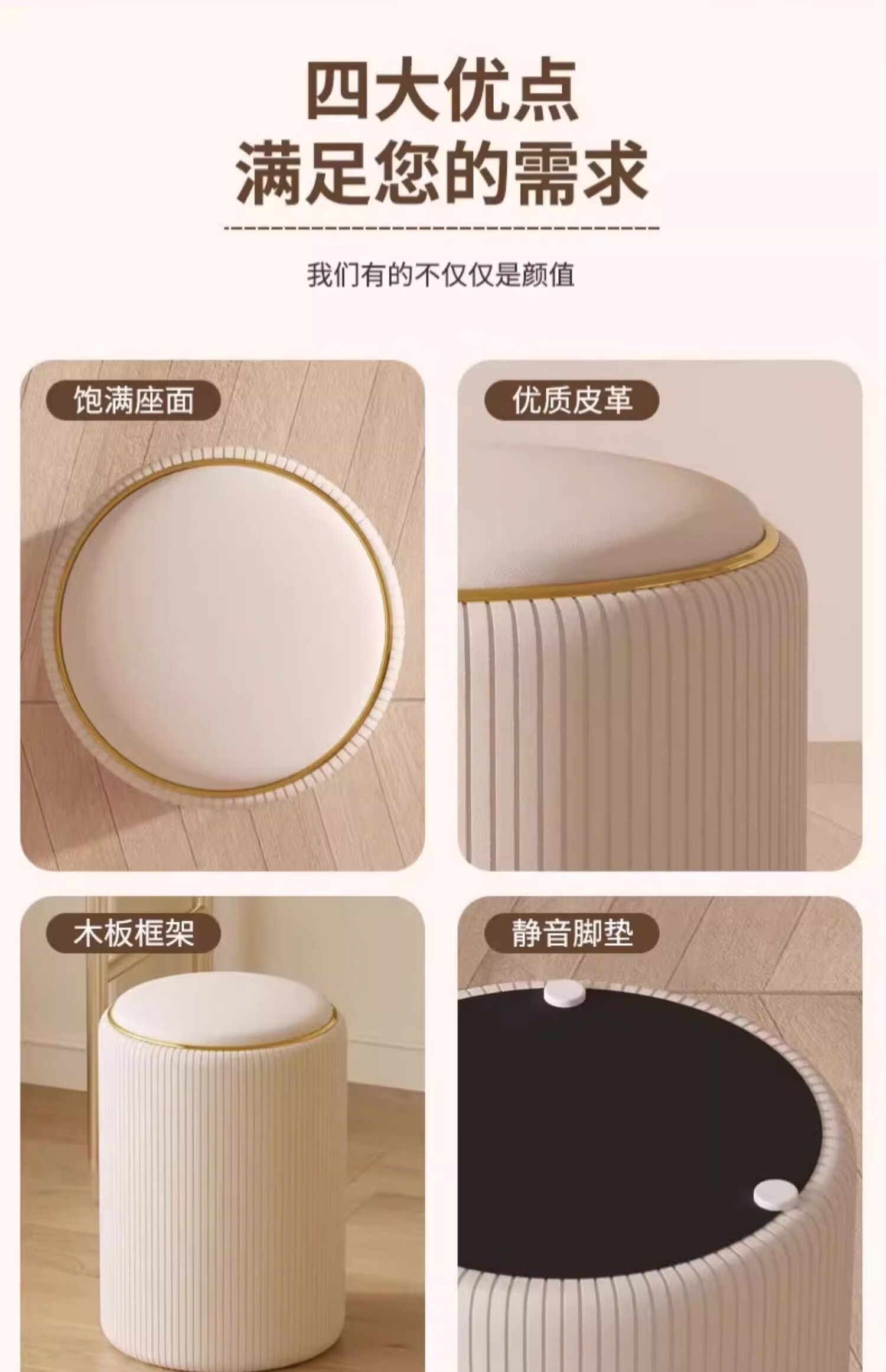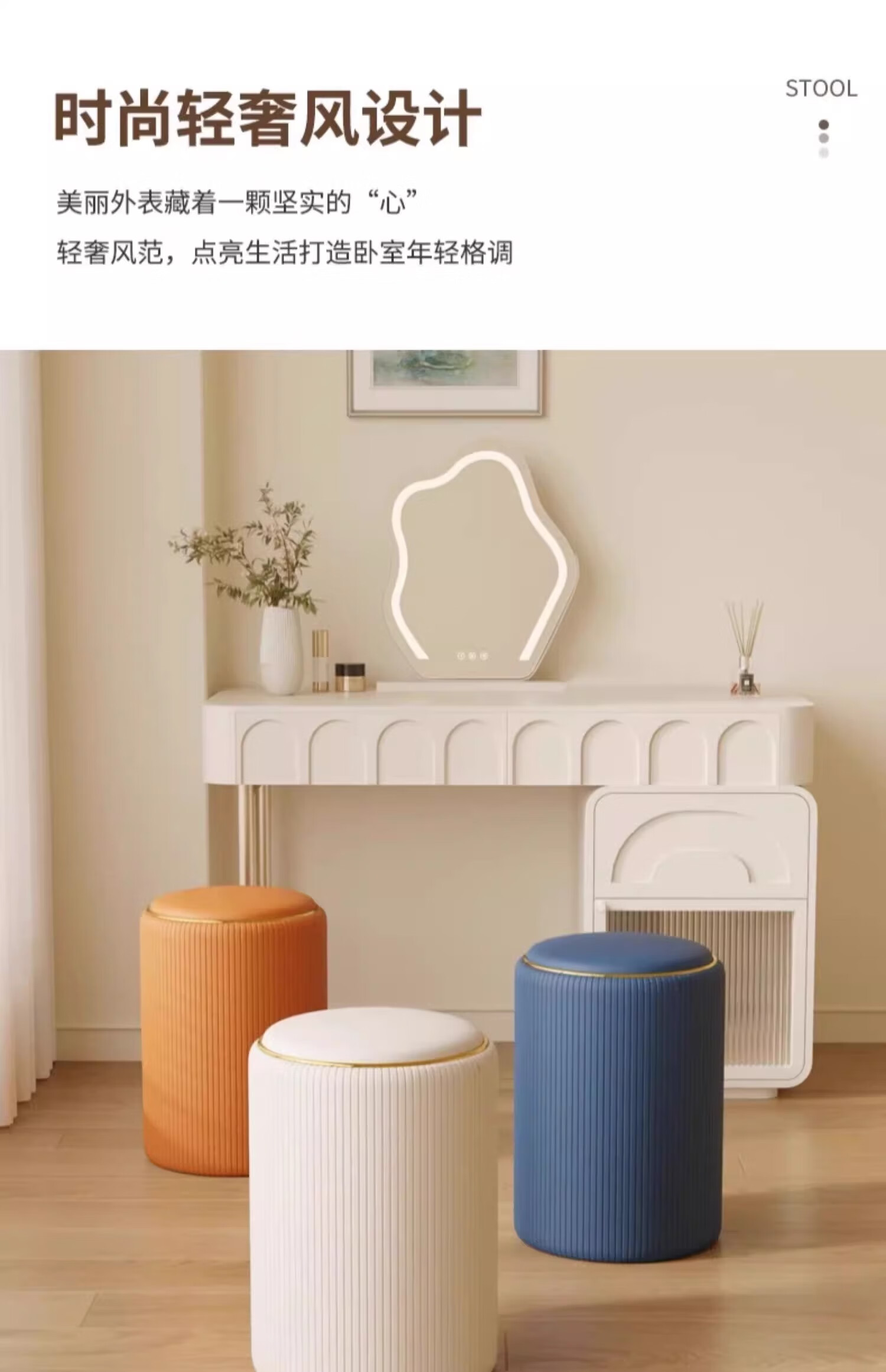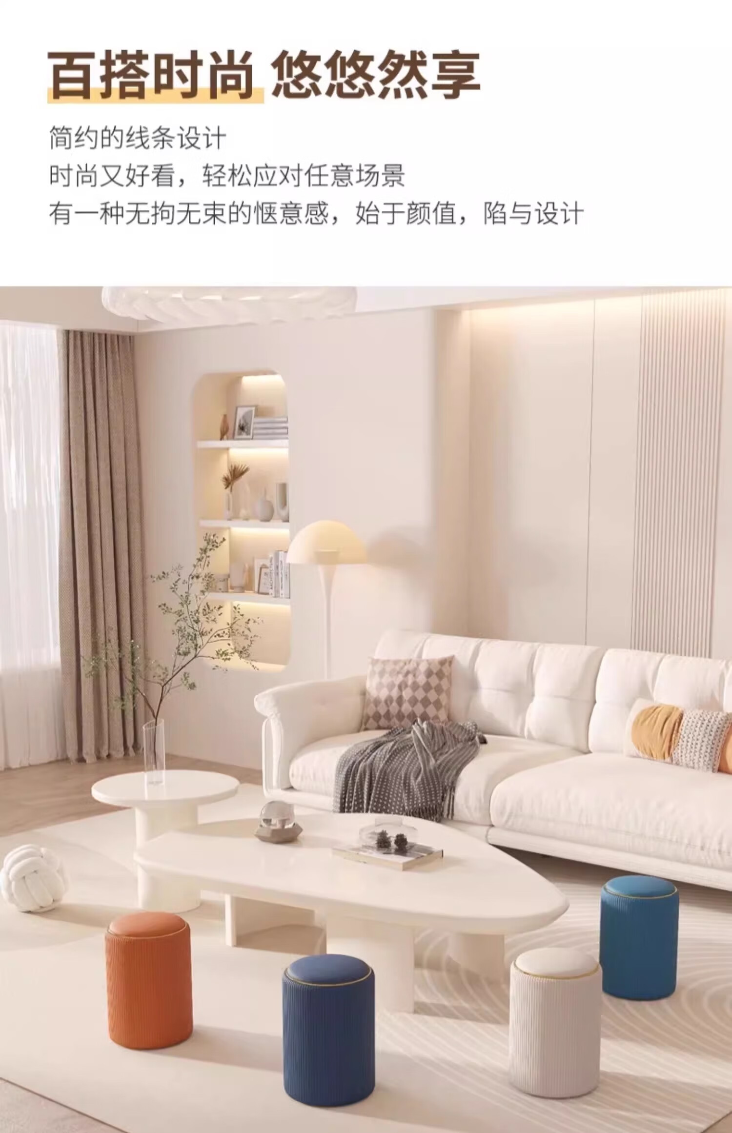 Titian Storage Dressing Stool Storage Round Stool Dressing Table Stool Changing Shoes Light Luxury Living Room Sofa Tea Table Stool Home Small Stool No Storage Beige Vertical Line Leather