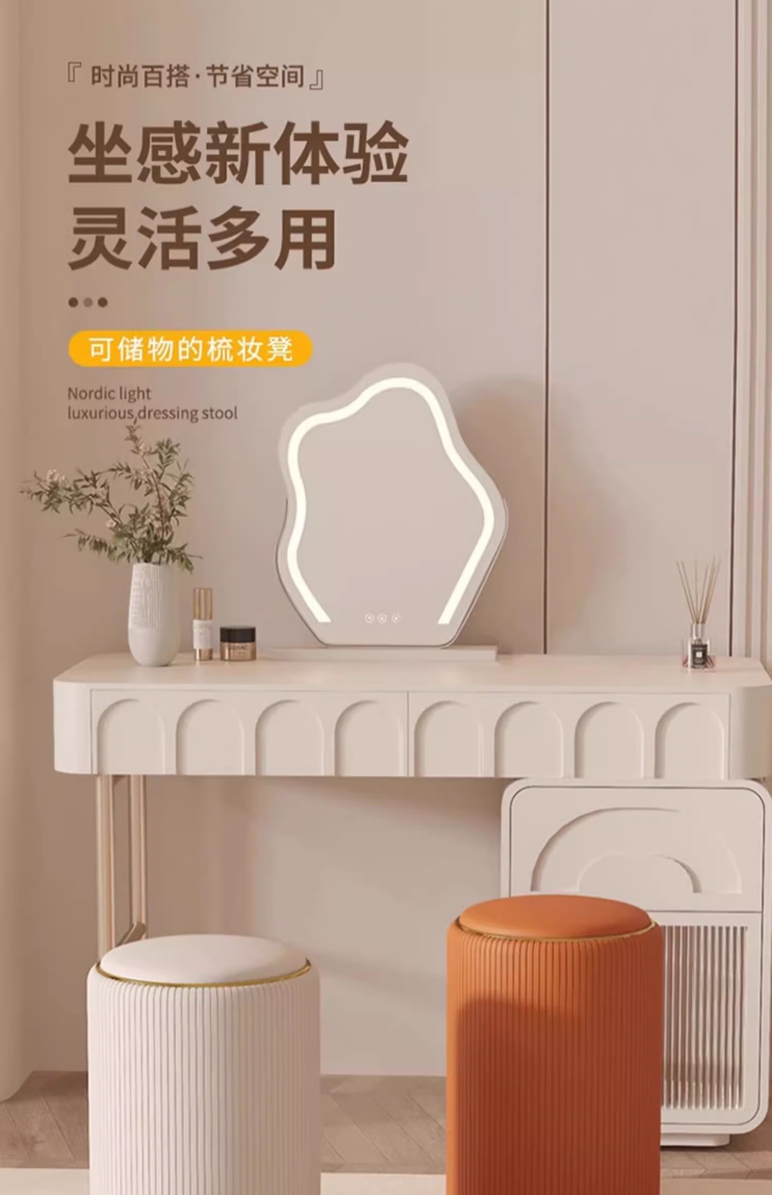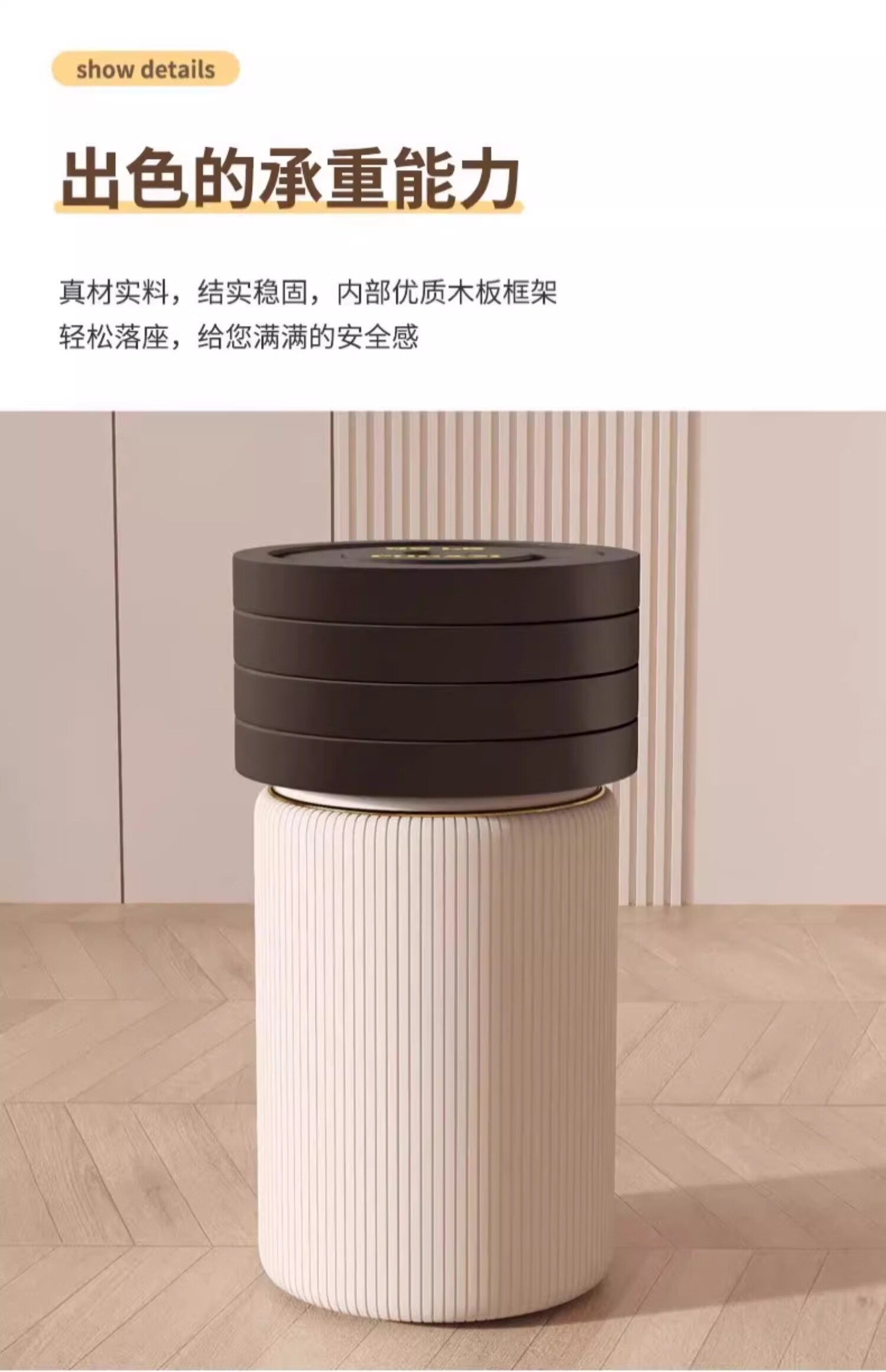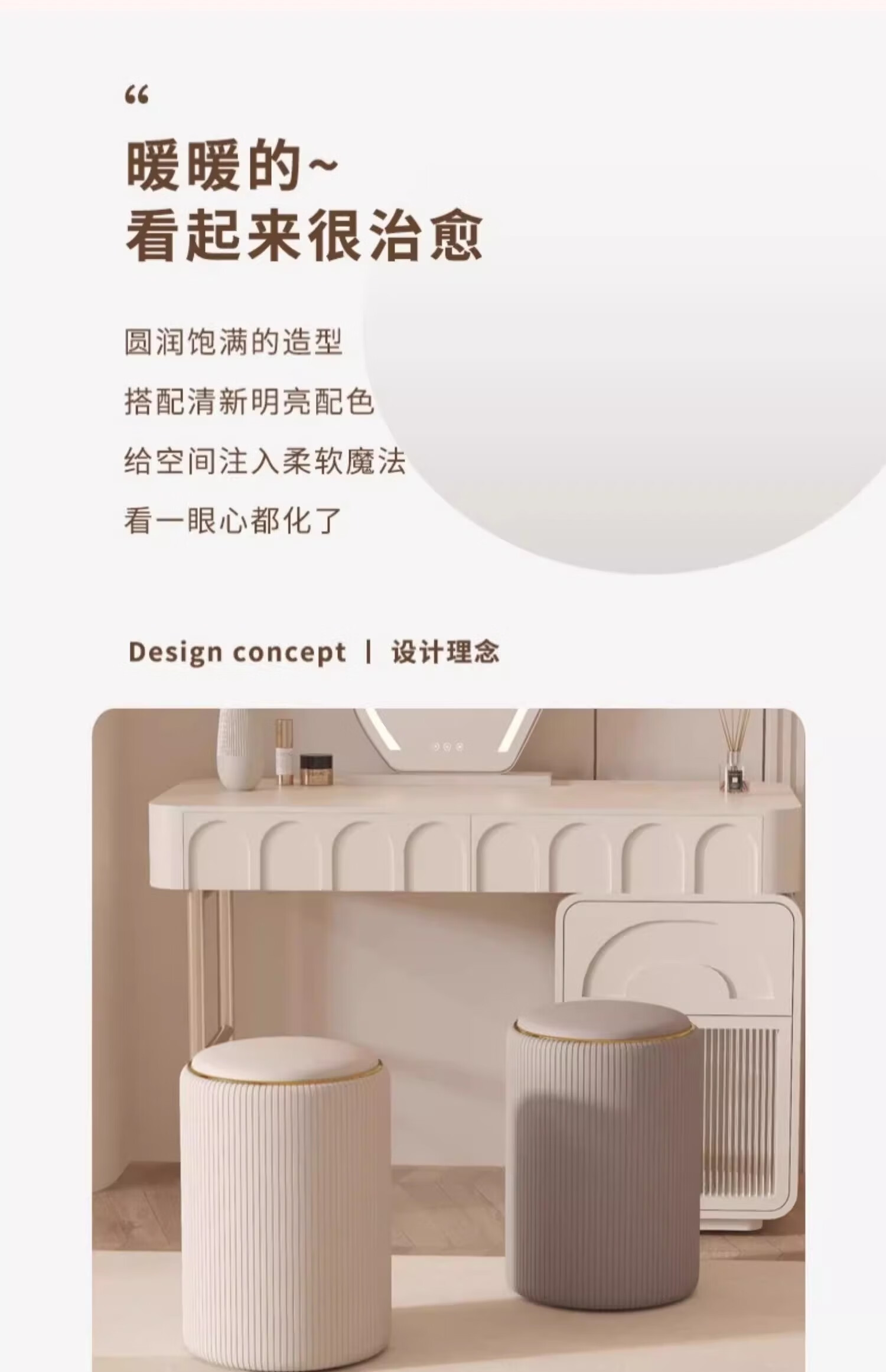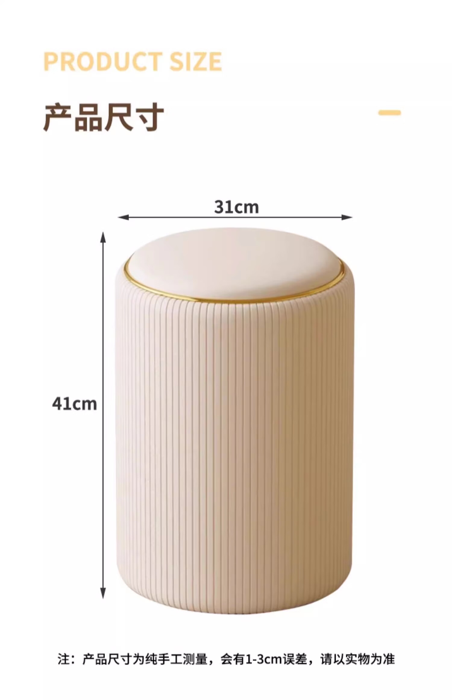 Titian Storage Dressing Stool Storage Round Stool Dressing Table Stool Changing Shoes Light Luxury Living Room Sofa Tea Table Stool Home Small Stool No Storage Beige Vertical Line Leather