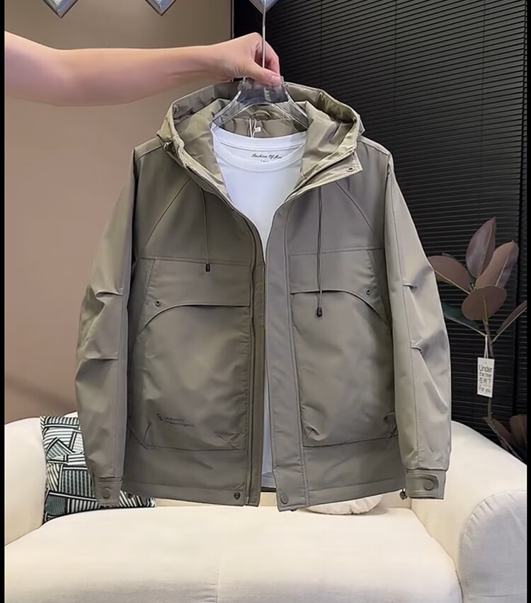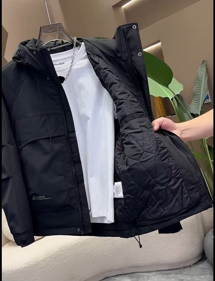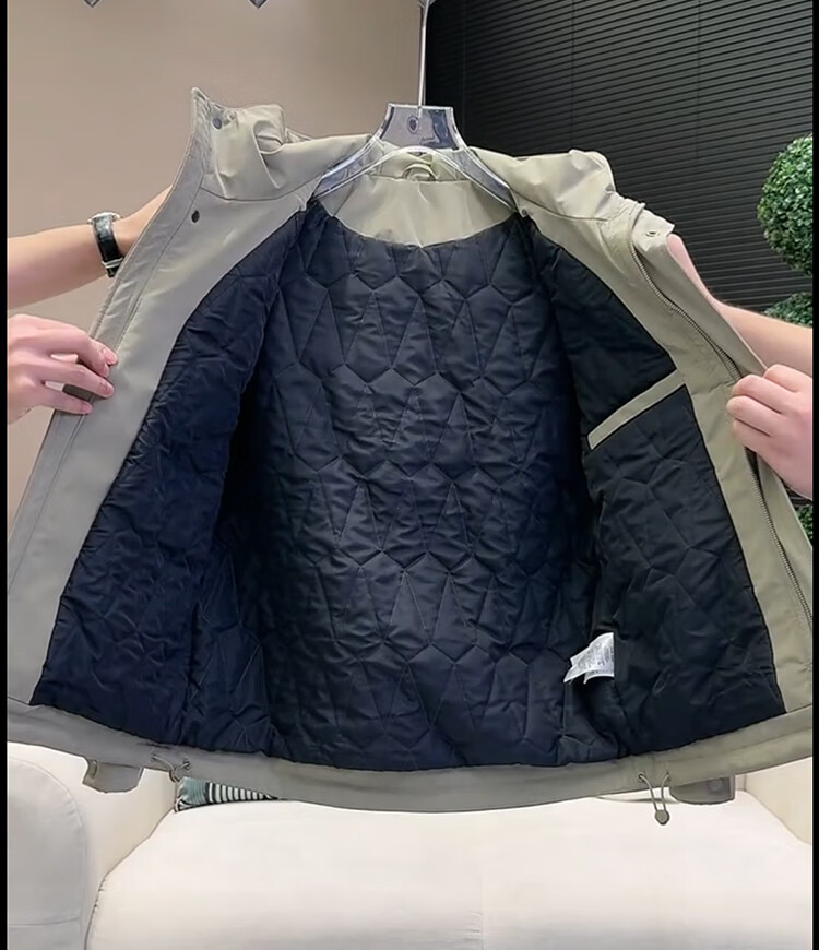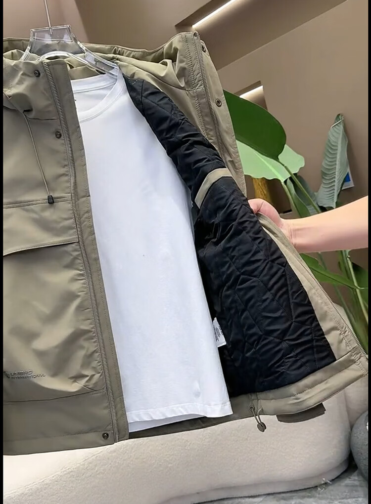 ROMON Jacket Men's Cotton Jacket Autumn and Winter Padded Jacket Men's Thickened Warm Windproof Workwear Hooded Second Cotton Jacket Khaki Green 3XL Recommended 165-180Jin Jin equals 0.5 kg