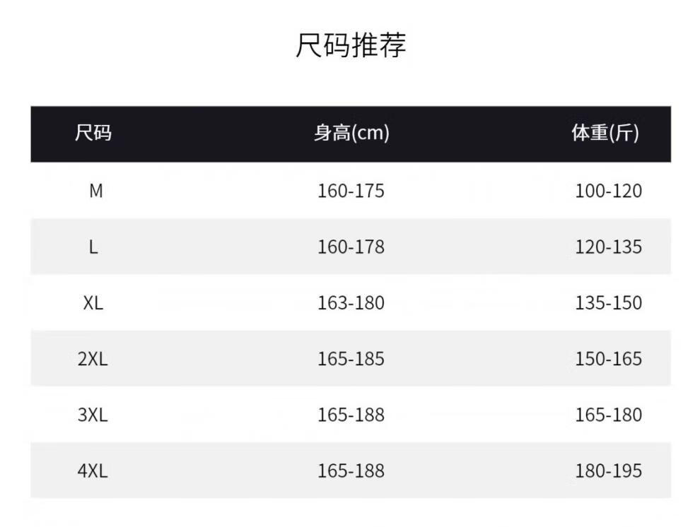 China (cm) 165 / 88-90 170 / 96-98 175 / 108-110 180 / 118-122 185 / 126-130