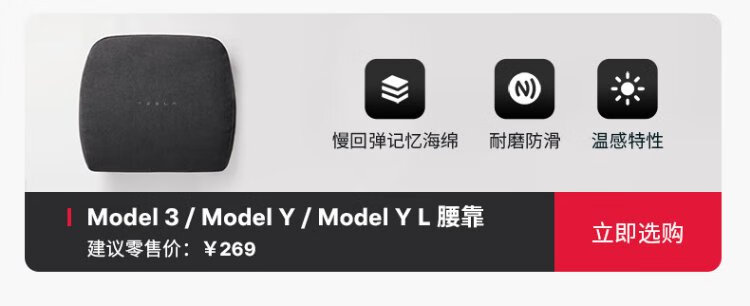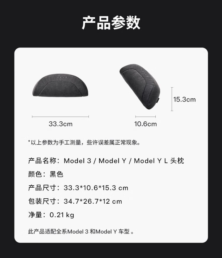Tesla official Tesla Model 3/Model Y/Model Y L headrest (single) pillow