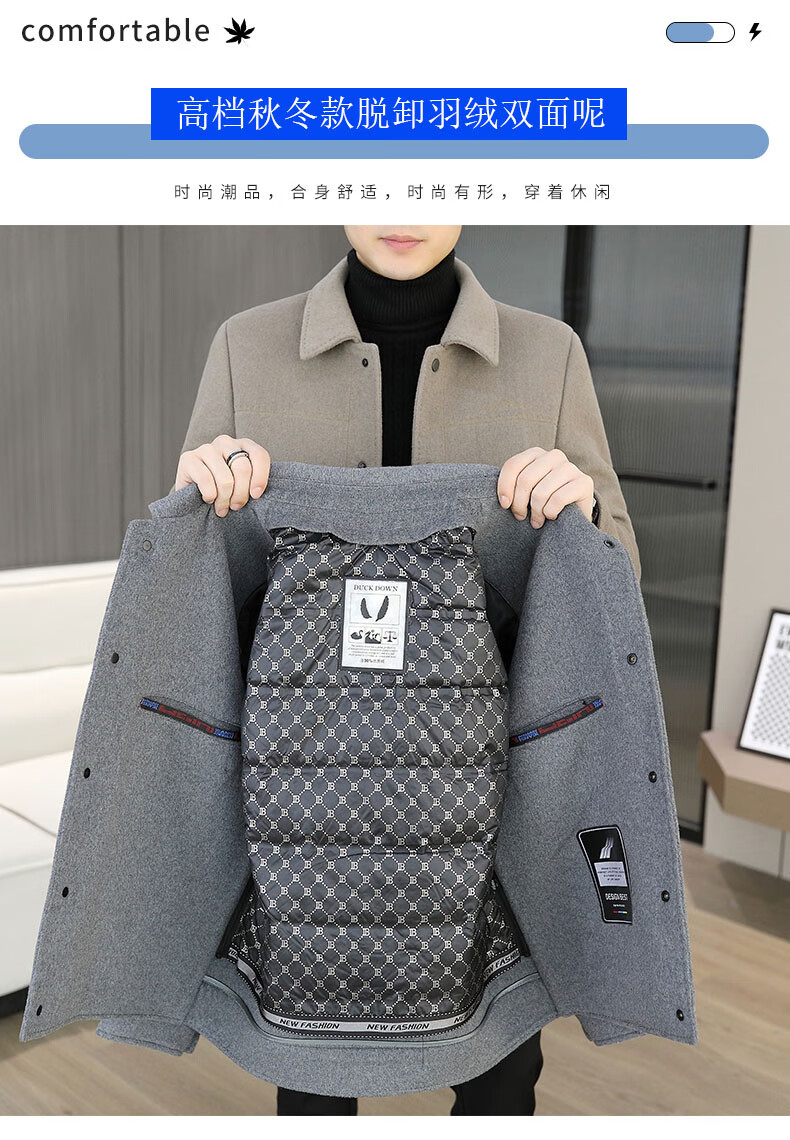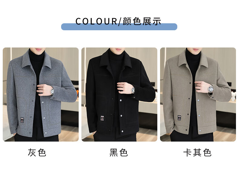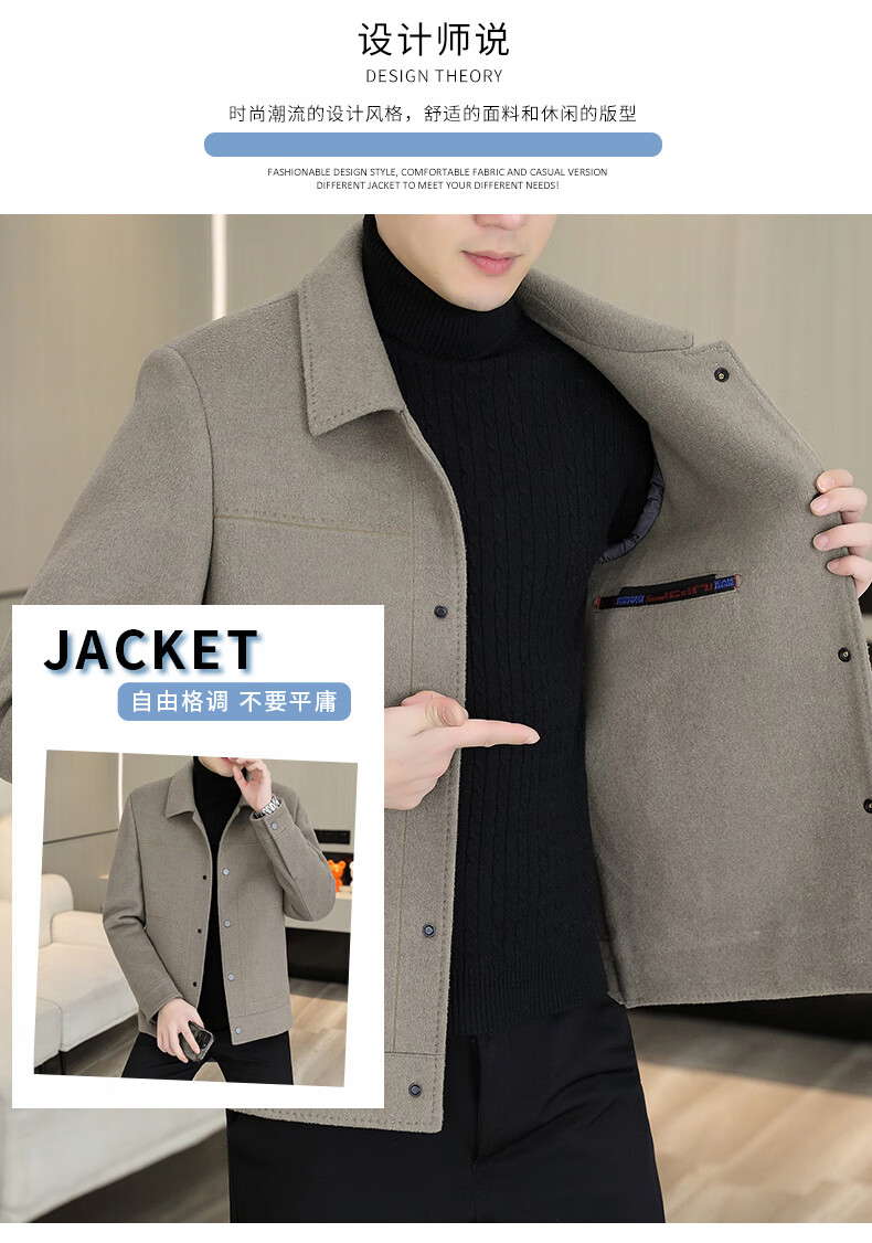 Hengyuanxiang wool fleece coat men's thickened woolen jacket autumn and winter style lapel double-sided woolen down liner jacket for men HYX-MN2308 khaki spring and autumn style without M 95-115Jin Jin is equal to 0.5 kg