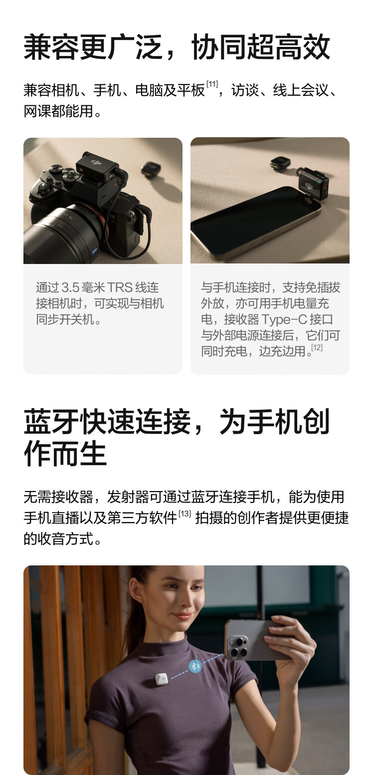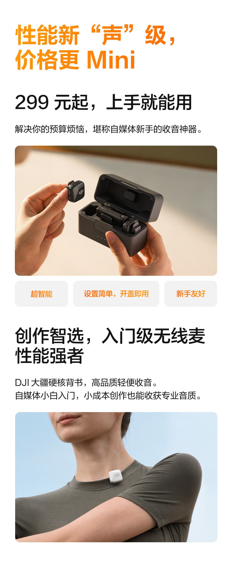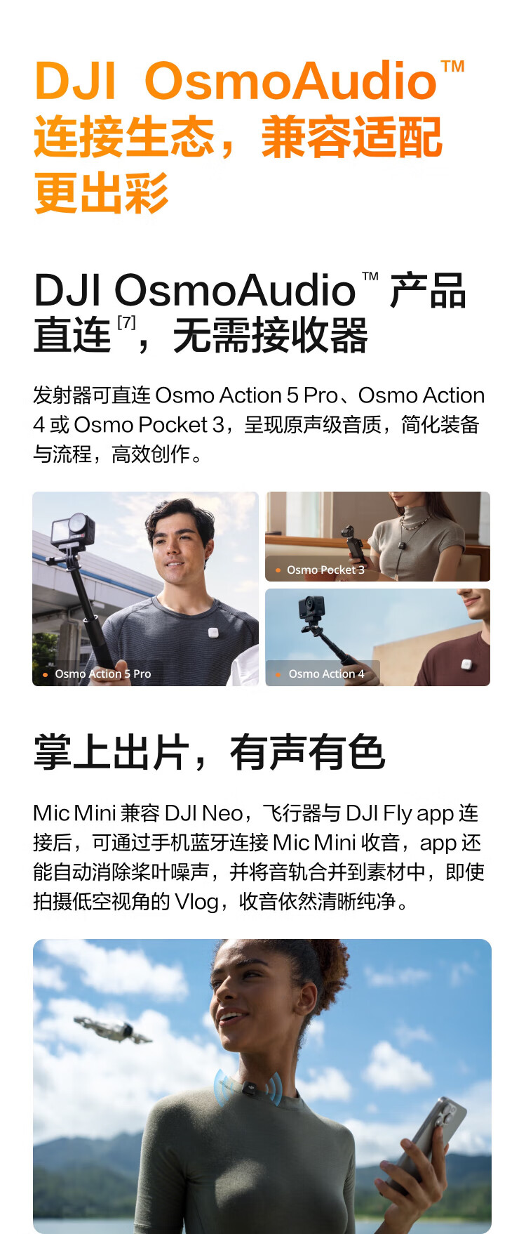 DJI Mic Mini Mini Wireless Microphone Noise Canceling Lavalier Microphone Outdoor Interview Live Broadcast Vlog Mobile Camera Micro Original Sound Level Radio Microphone Android + Apple 15/16 + Camera One for Two (Charging Box Included) Official Standard Configuration (Lightning Connector Not Included)
