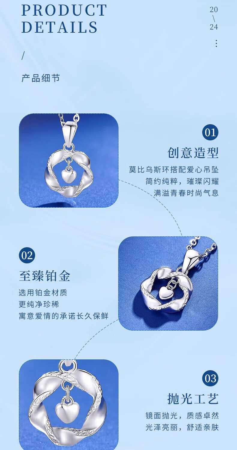 China Gold (CHINA GOLD) PT950 platinum necklace for women, four-leaf clover pendant, platinum clavicle chain, wedding and birthday gift for girlfriend and wife, four-leaf clover PT950 platinum pendant, about 1.8g, free silver chain