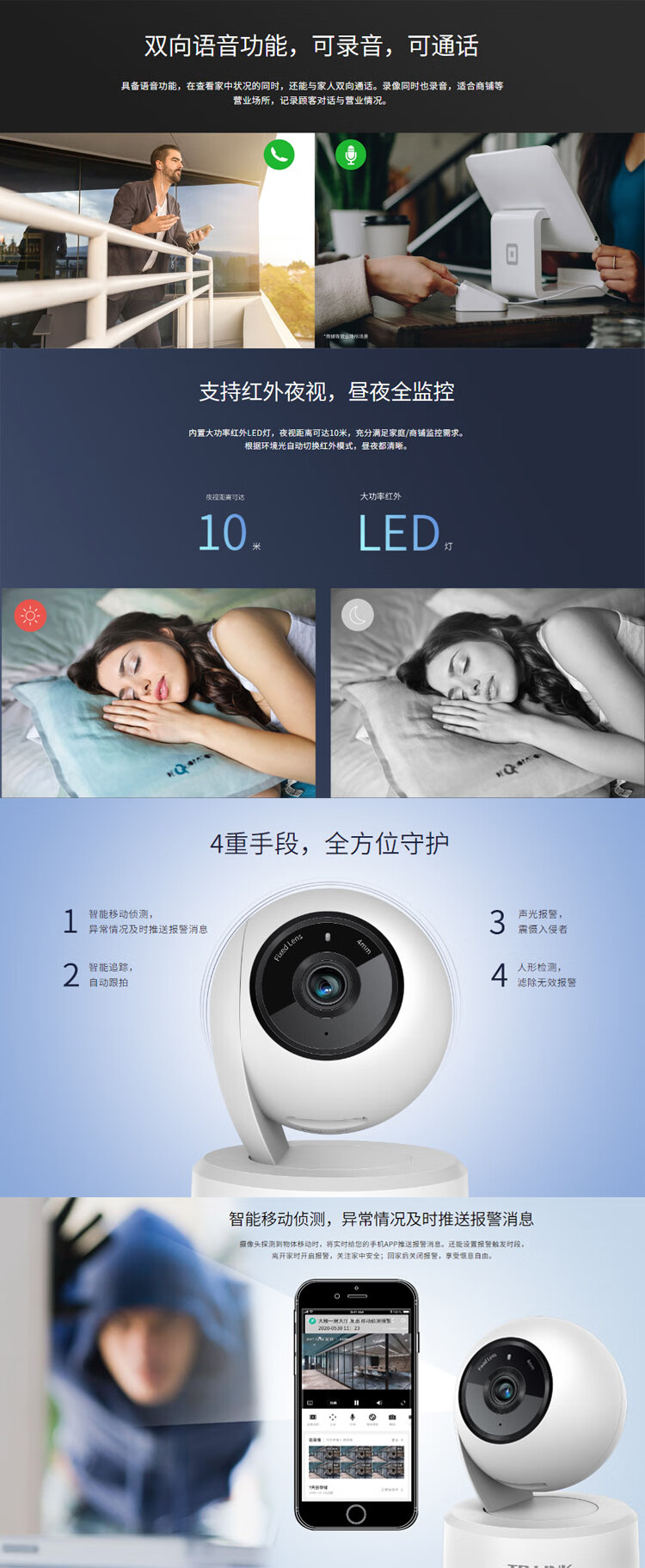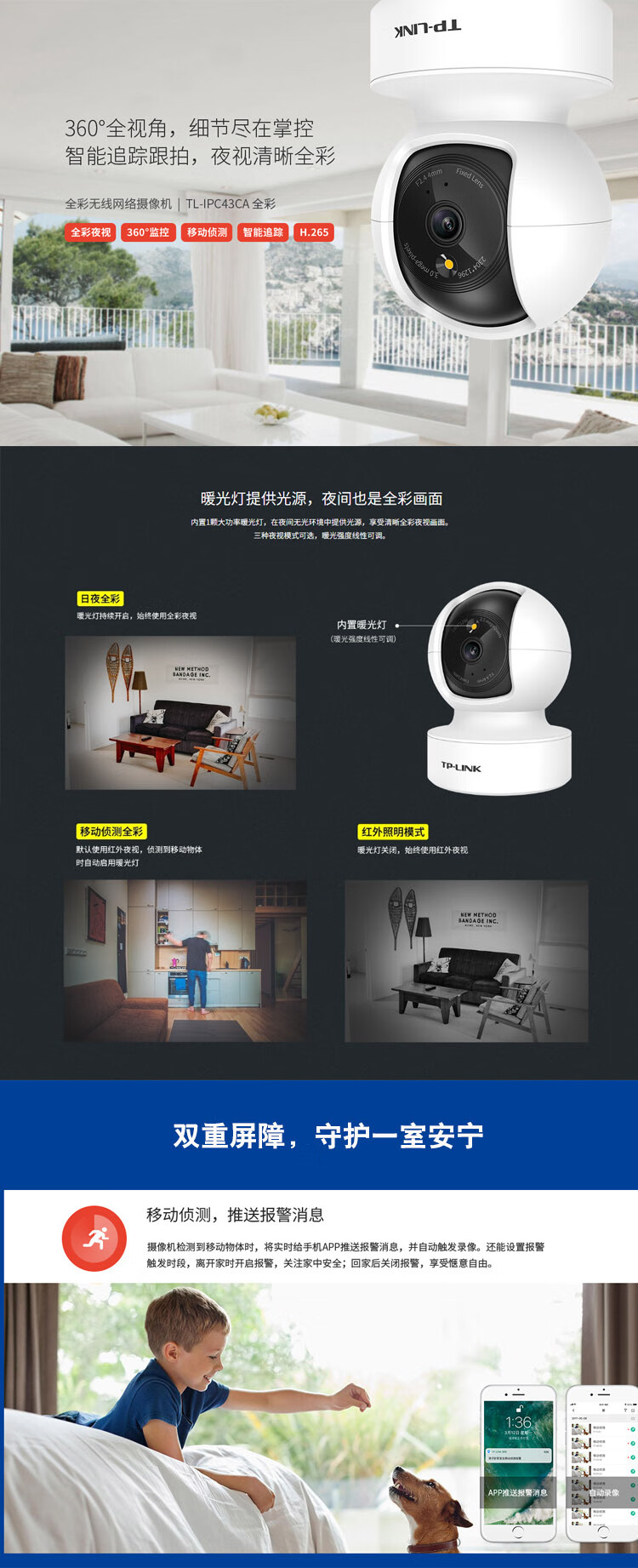 TP-LINK full color wireless home camera 360 no blind spots remote baby elderly pet monitoring WiFi connection TL-IPC44CL full color 4 million wireless + network port standard (no memory card)