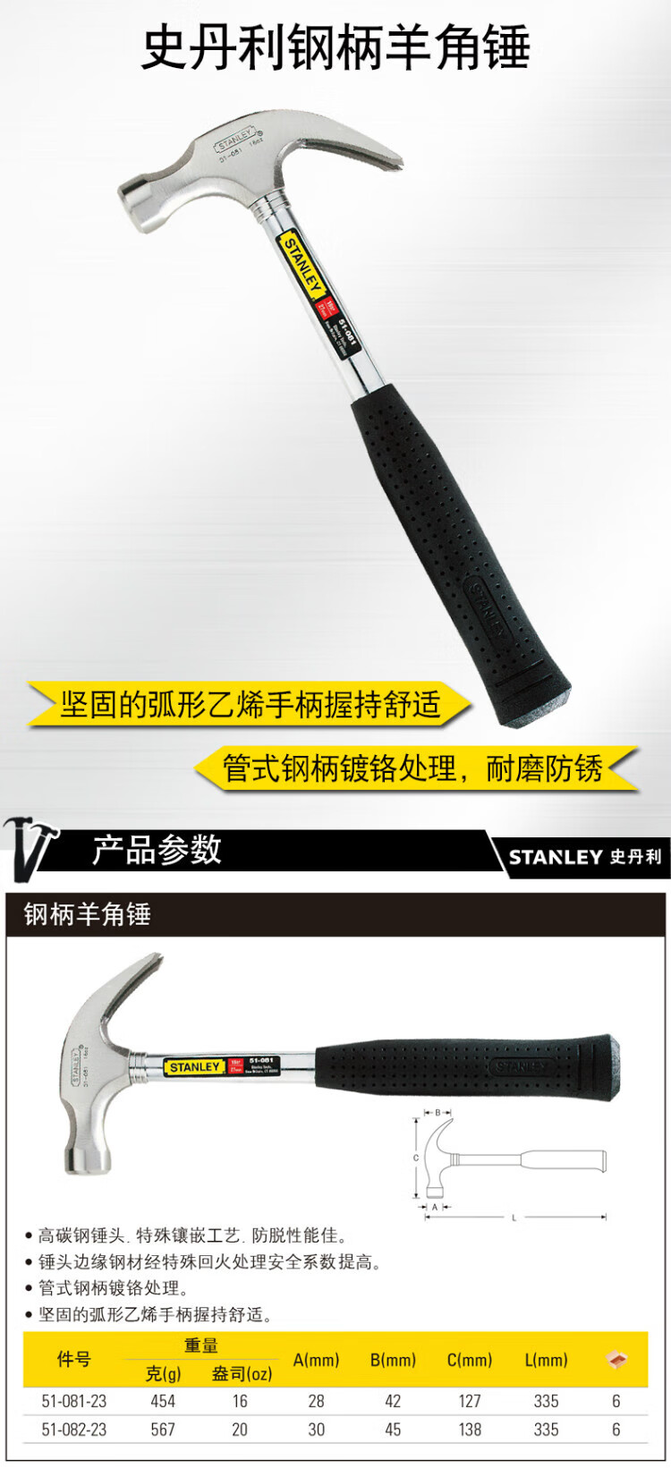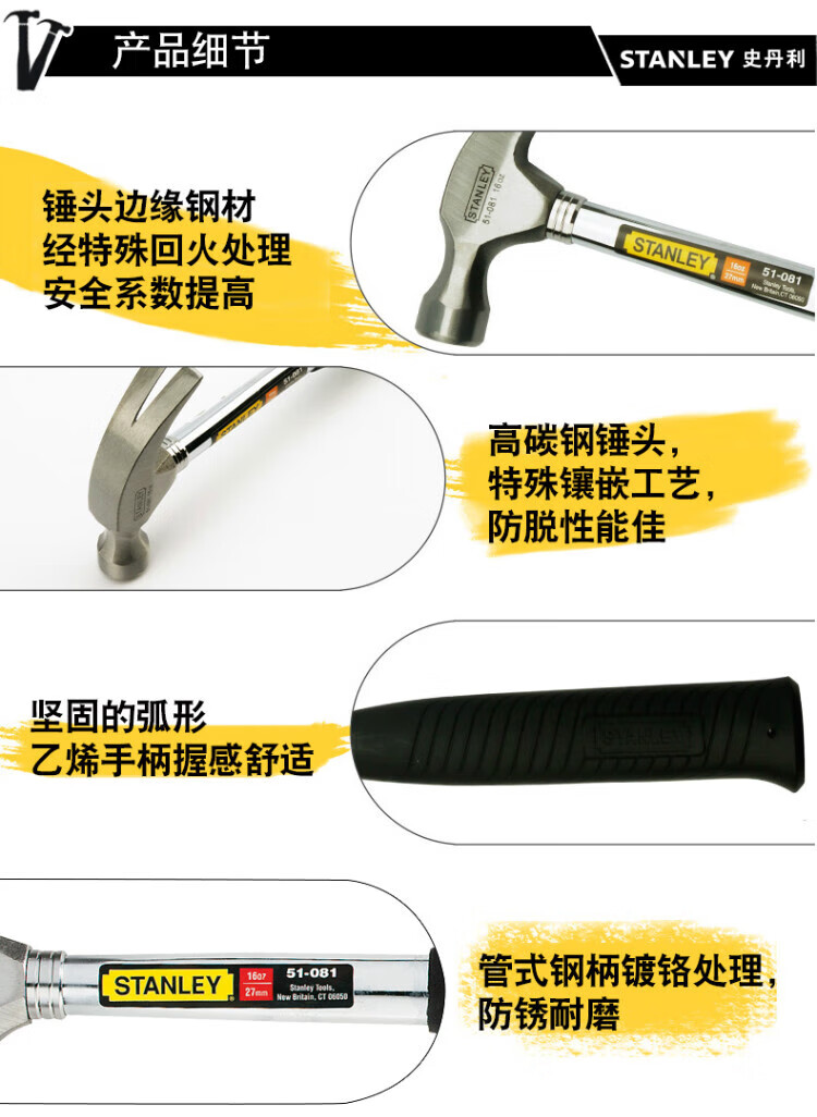Stanley (STANLEY) hammer steel handle claw hammer woodworking hammer hand hammer nail hammer installation hammer decoration tool 20oz 335mm 51-082-23