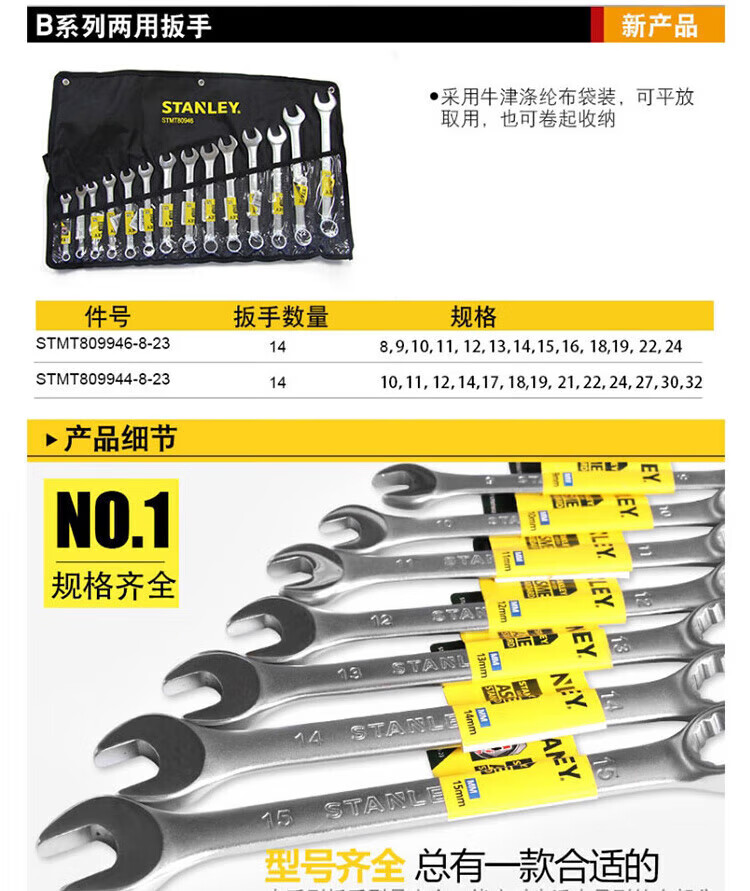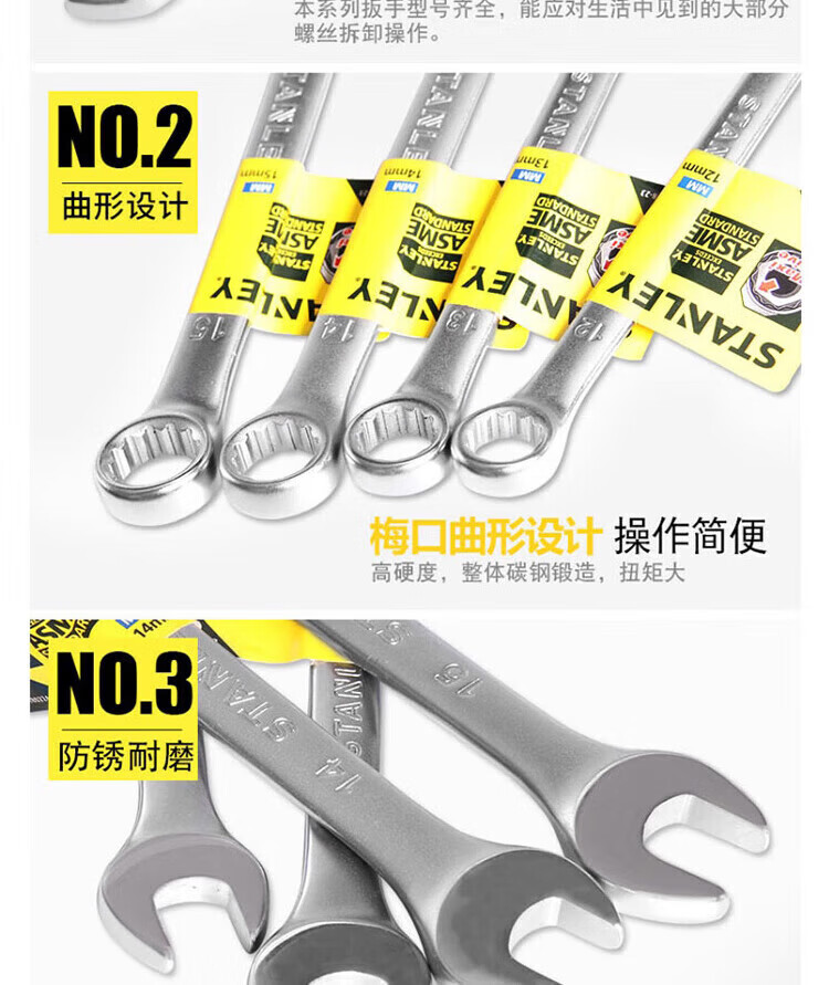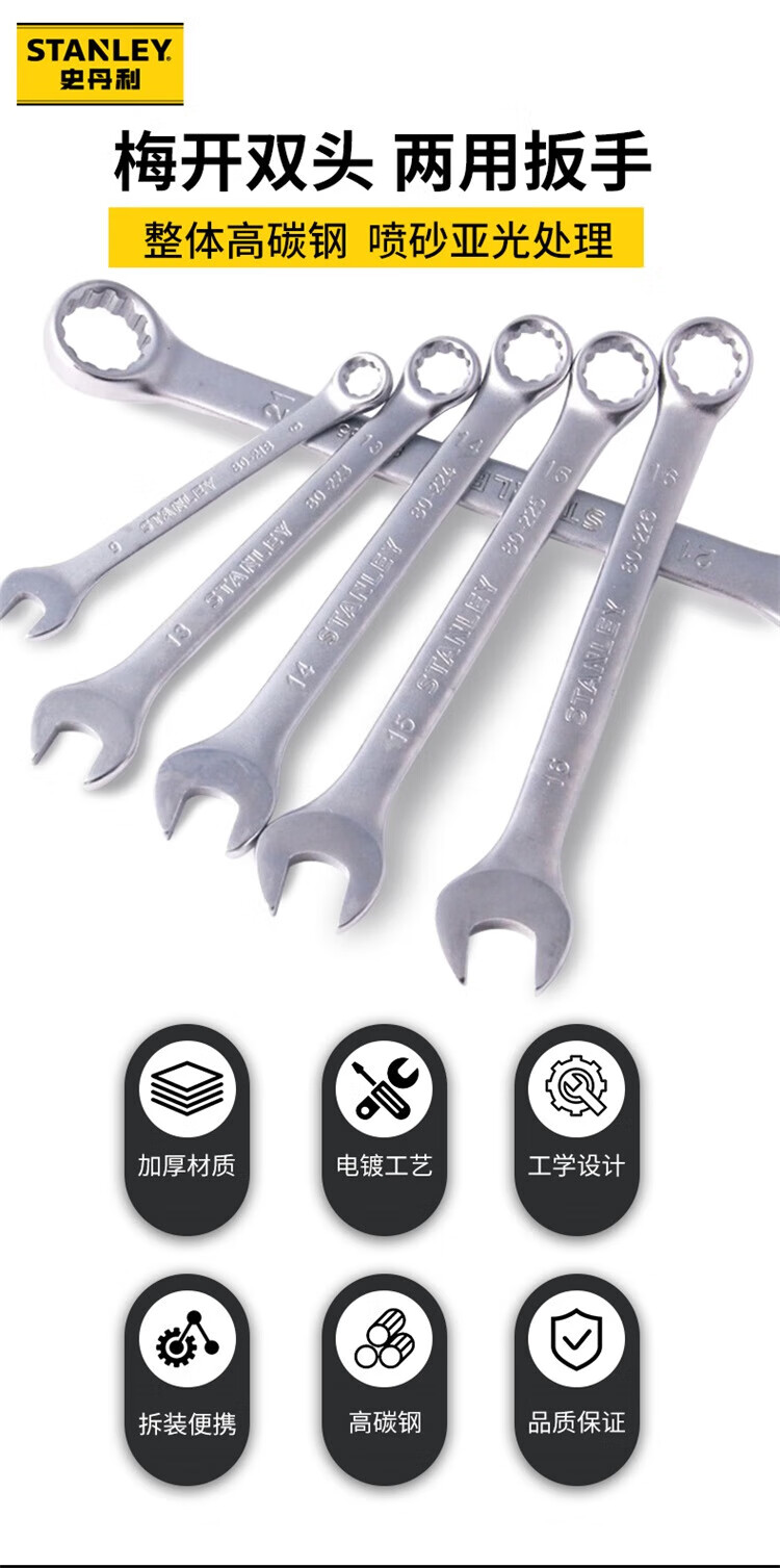 Stanley (STANLEY) Wrench Open Wrench Multifunctional Plum Double-headed Labor-saving Wrench Auto Repair Machine Repair Accessories Household Hardware Tools 10mm STMT80219-8-23