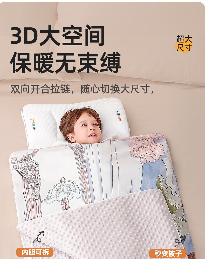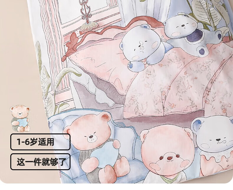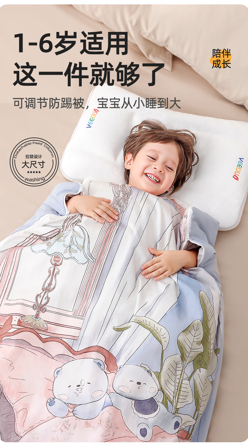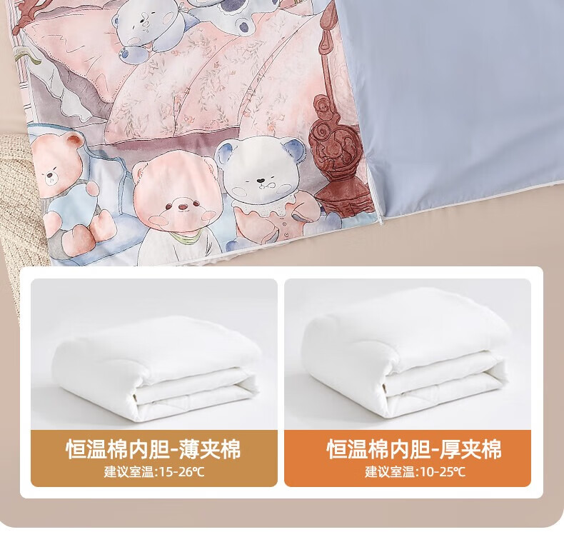 Warm-European detachable children's autumn and winter thickened constant temperature baby sleeping bag, anti-kicking quilt for big children, universal for all seasons, sleeping bear, beanie fleece, inner quilt cover + 1 thin quilt core + 1 thick quilt core