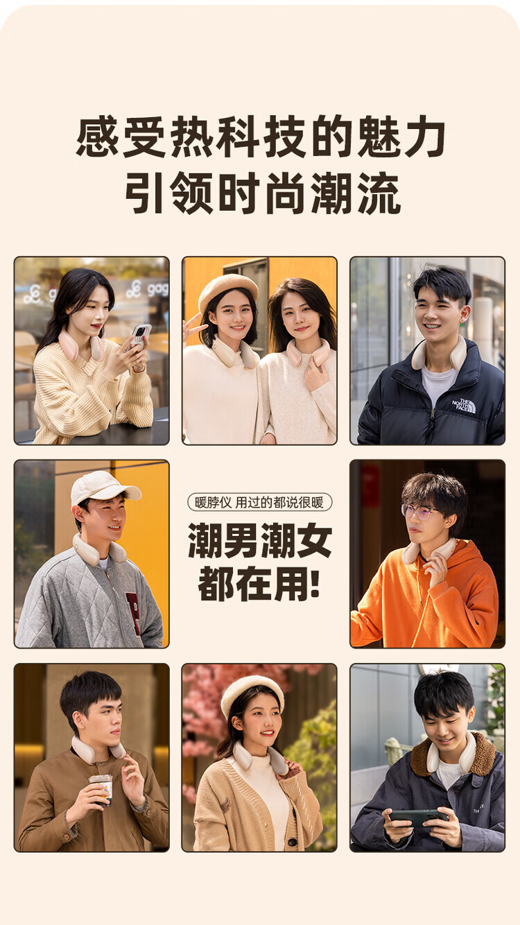 Quality companion New Year gift winter neck warmer hanging neck portable neck warmer gift Type-C charging hanging neck warmer off-white - thickened wool