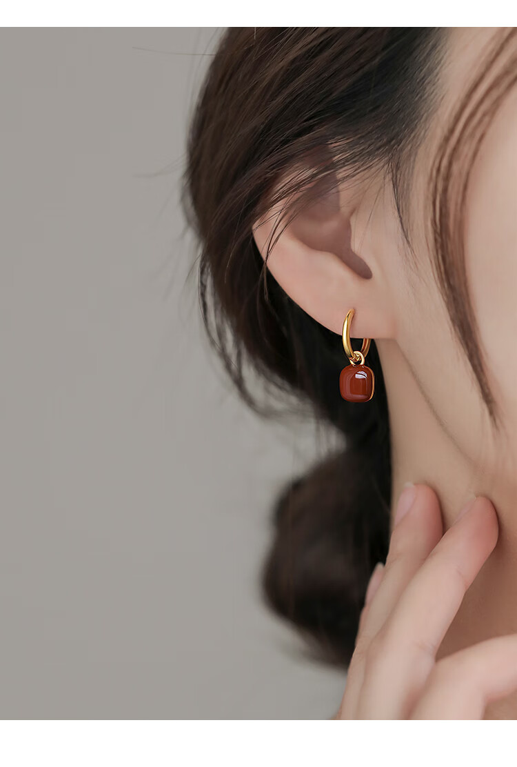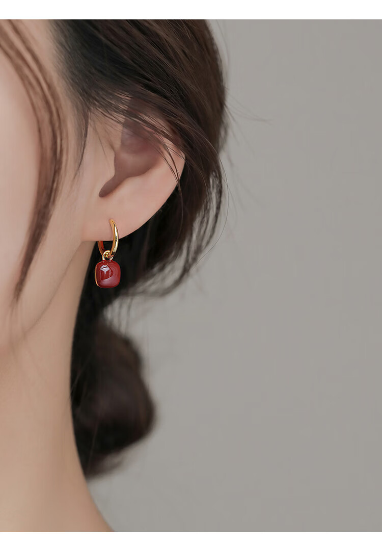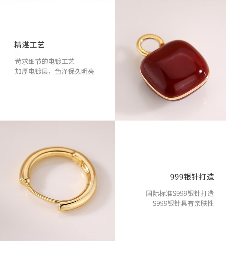 YIZUN. CHOMEL 999 Pure Silver Red Earrings for Women 2025 New Year Niche New Year Premium Earrings Zodiac Year Earrings Gift for Wife 999 Pure Silver Needle Earrings