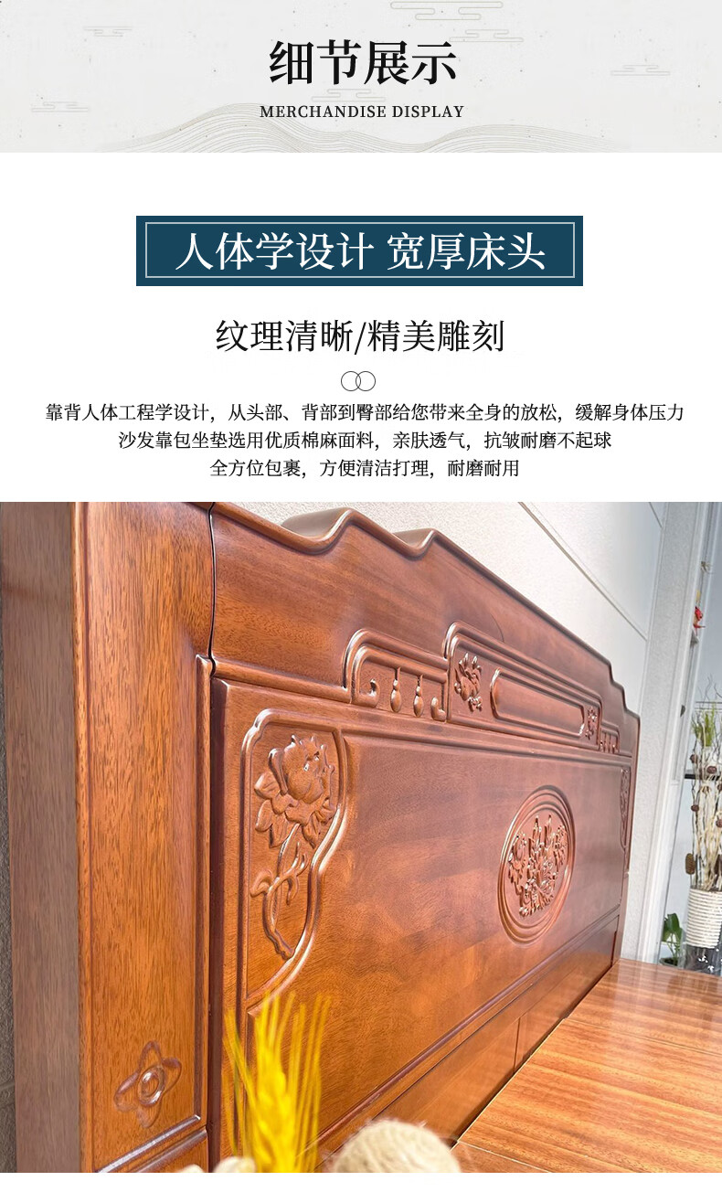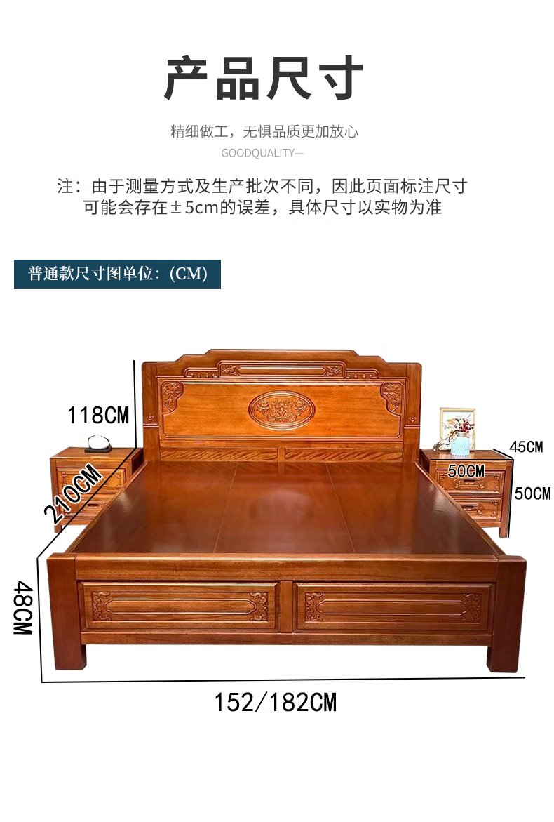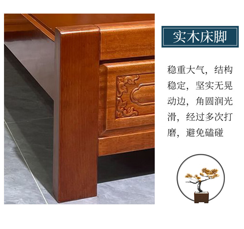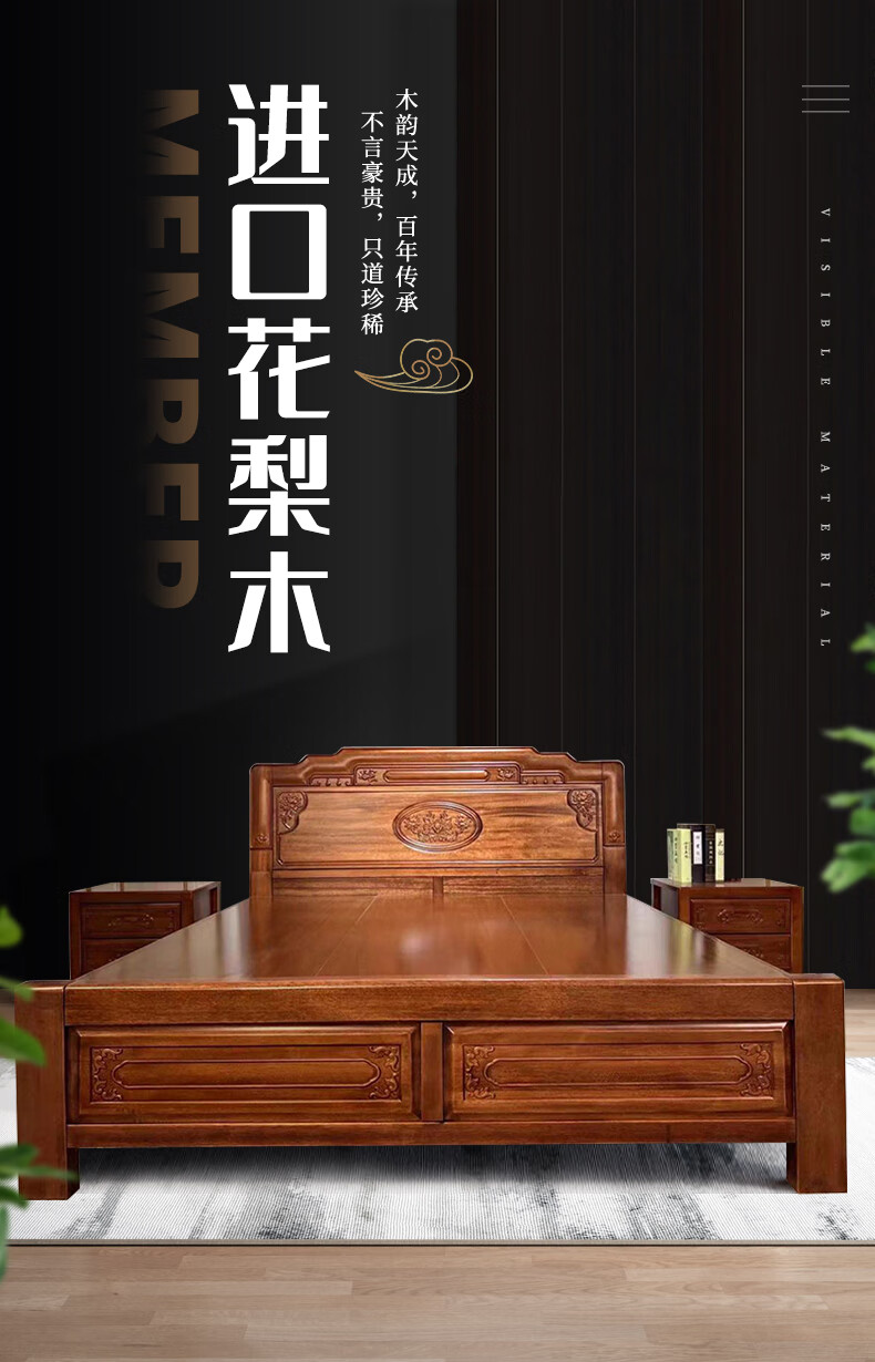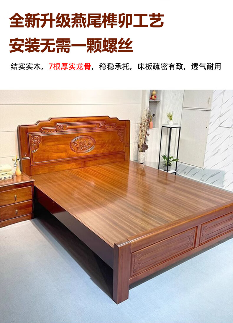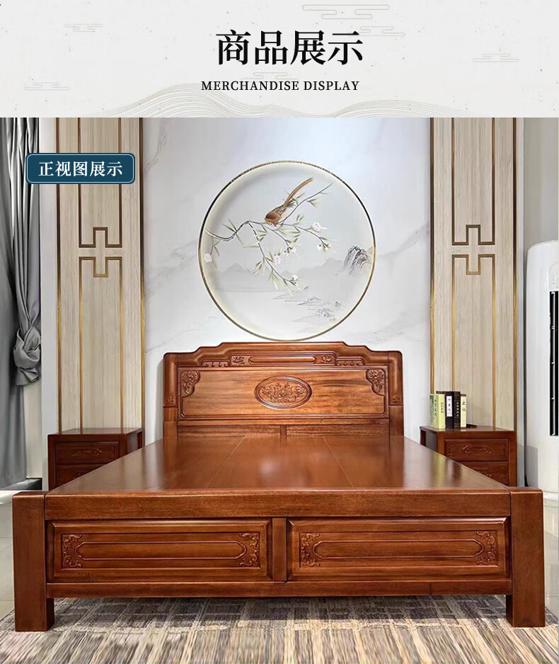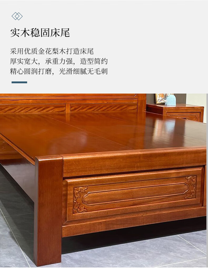 Millennium Shengshi Solid Wood Bed Golden Rosewood Antique Double Bed Chinese Carved Large Bed Classical Bedroom Furniture Rosewood Solid Wood Bed 1.8*2.0m Full Mortise and Tenon Style