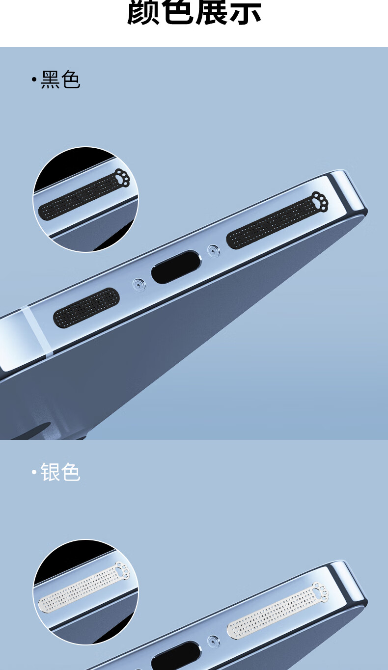 Munian is suitable for OPPO Reno13 speaker dustproof sticker, charging port dustproof plug, reno13Pro speaker anti-dust net plug, black cat claw net - 4 long + 4 short