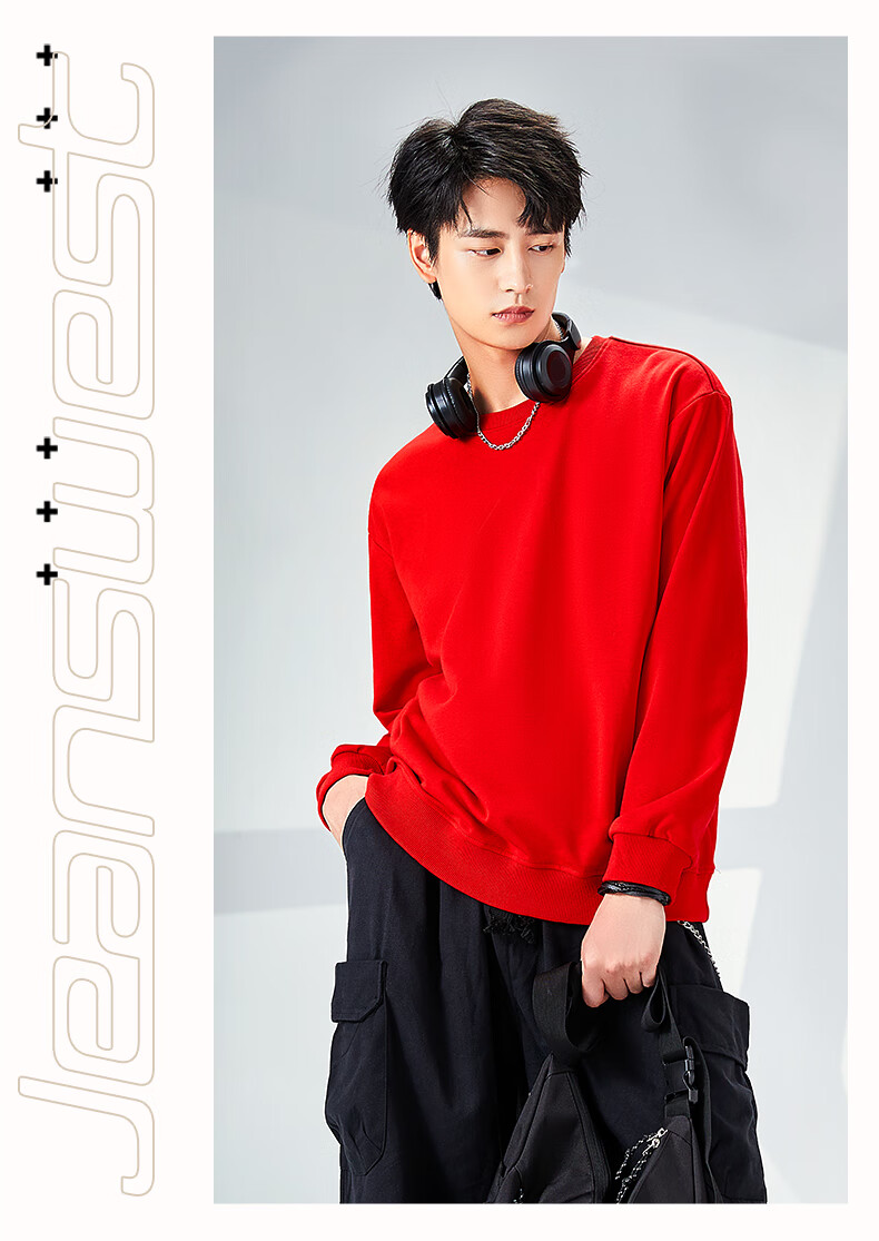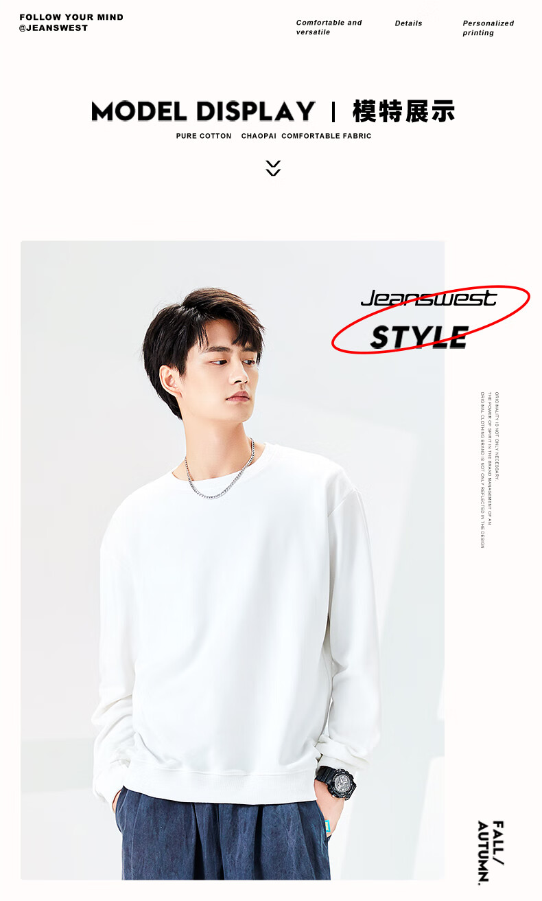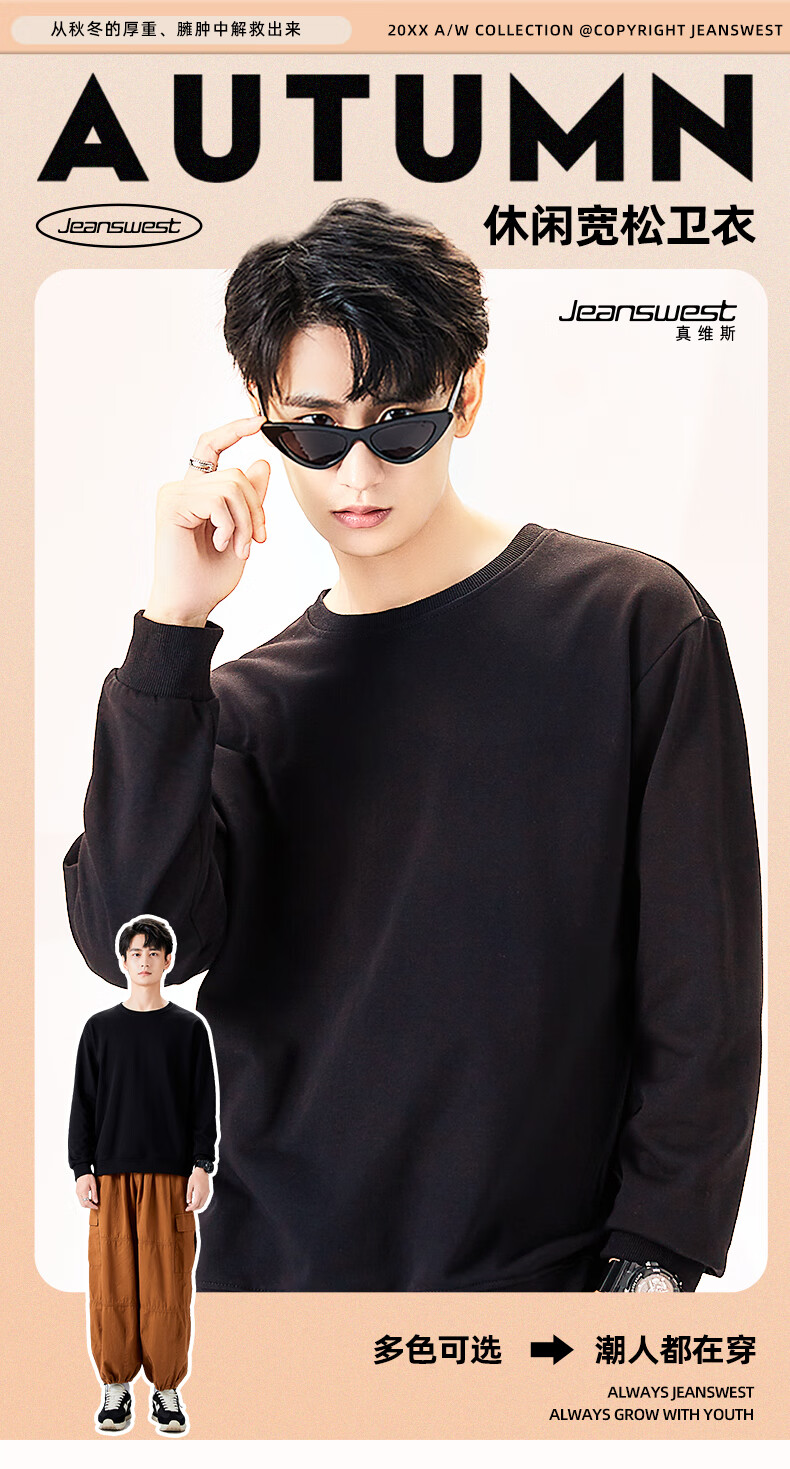 Jeanswest sweatshirt men's spring, autumn and winter velvet thickened 2026 new loose round neck winter wear warm inner long-sleeved top silver fox velvet dark gray solid color 2XL