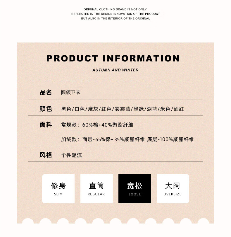 China (cm) 165 / 88-90 170 / 96-98 175 / 108-110 180 / 118-122 185 / 126-130