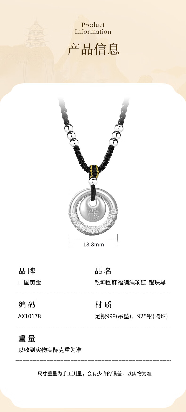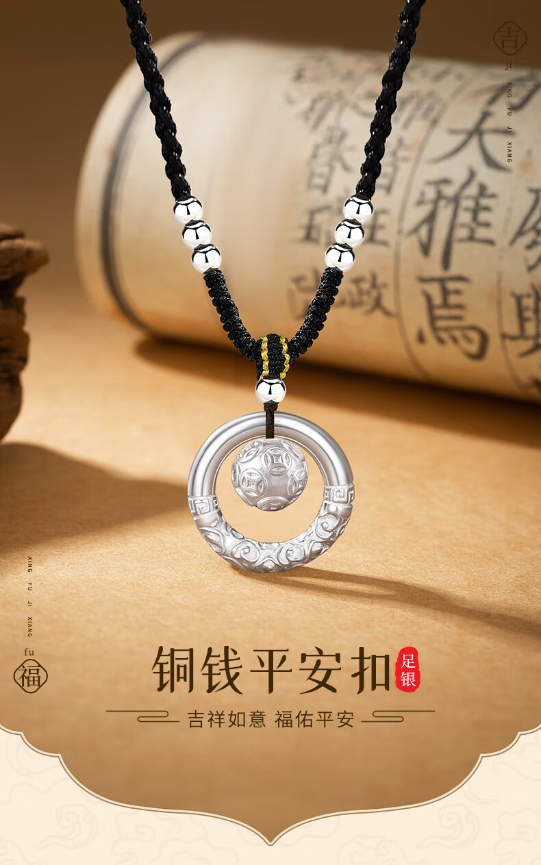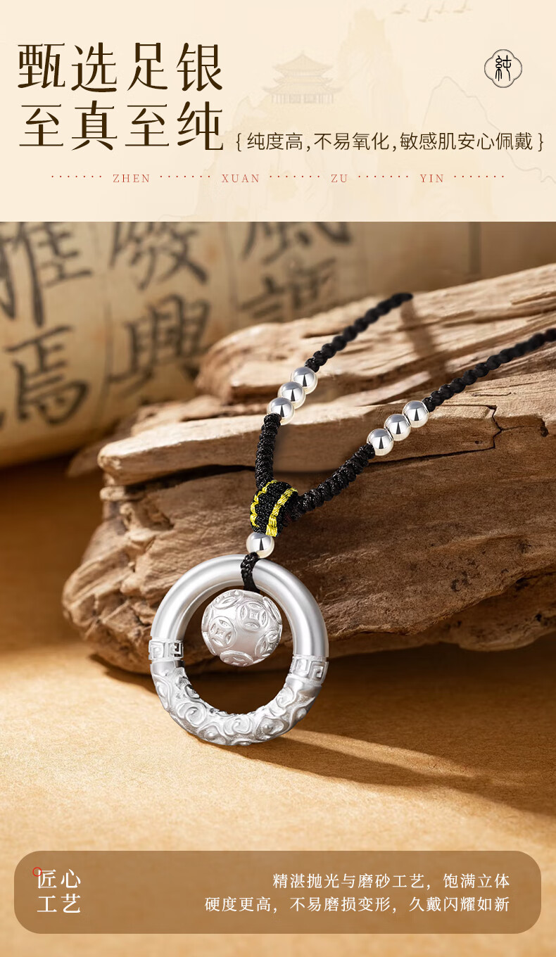 Collier en argent pur avec boucle de sécurité en or de Chine, perle de transfert de pièce de monnaie en cuivre pour femme, pendentif en argent, cadeau d'anniversaire pour petite amie et femme, anniversaire de mariage, pièce de monnaie en cuivre, collier en corde tressée - Perle d'argent noire