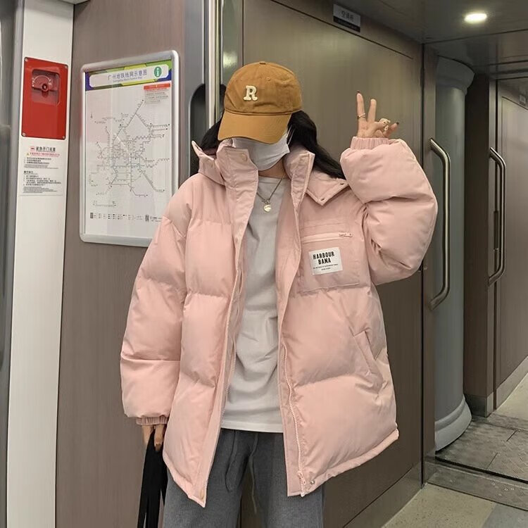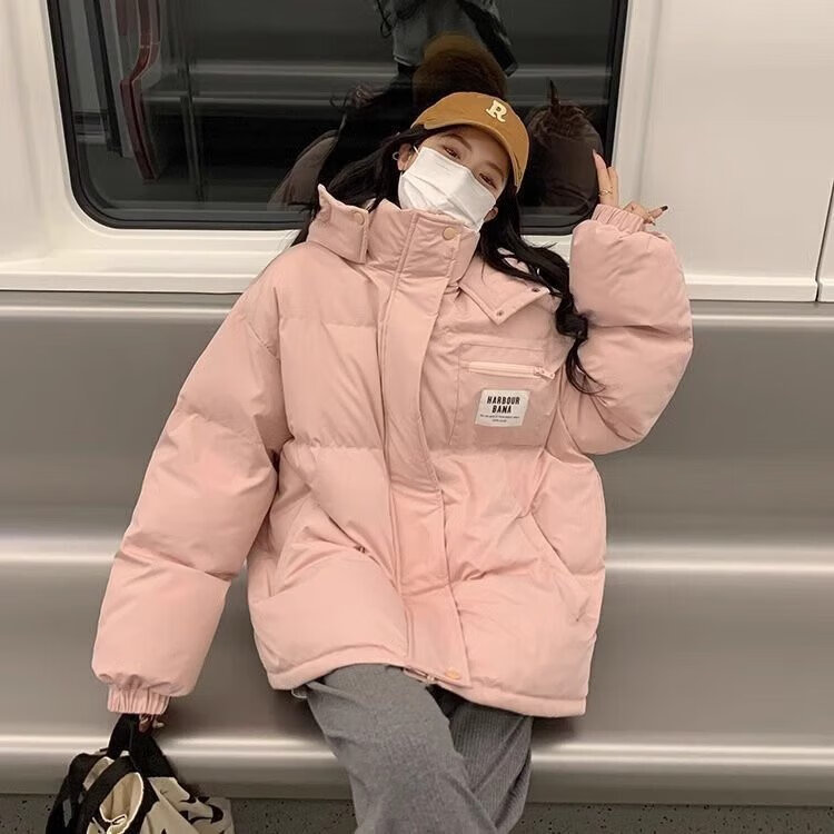 Xiangyi Lovers Down Cotton Jacket Women 2026 New Winter Short Cotton Jacket Thickened Cotton Jacket Small Loose Bread Jacket Pink Warm and Breathable One Piece for Winter M Size Recommended 105-125 Jin Jin is equal to 0.5 kg