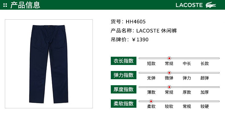 LACOSTE French crocodile official flagship men's fashion trend commuter straight pants trousers casual pants |HH4605 166_dark blue 40_S 170