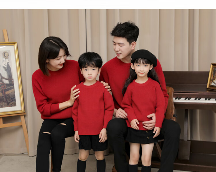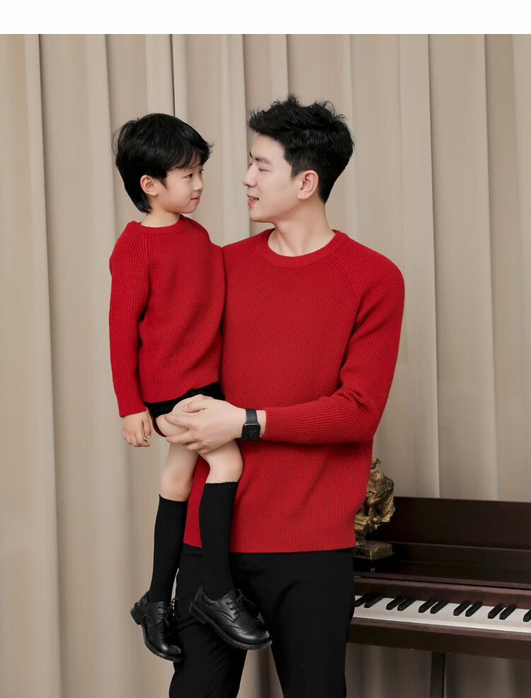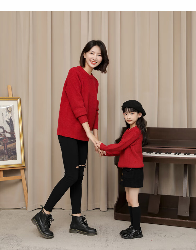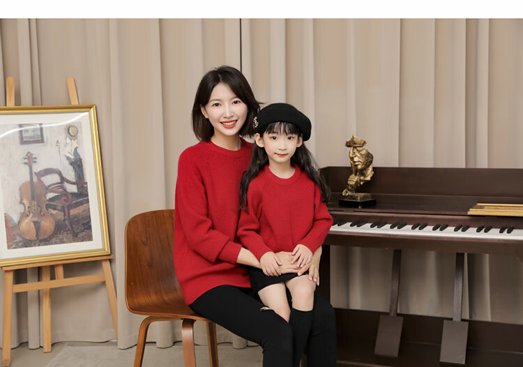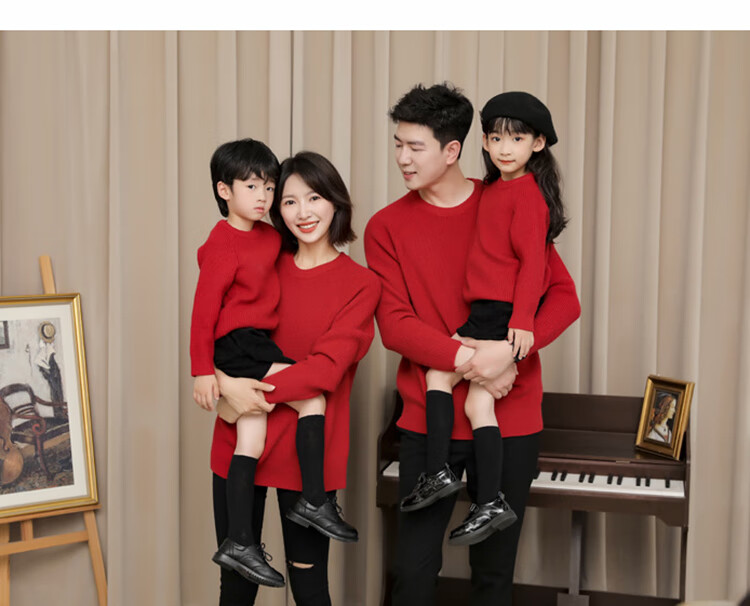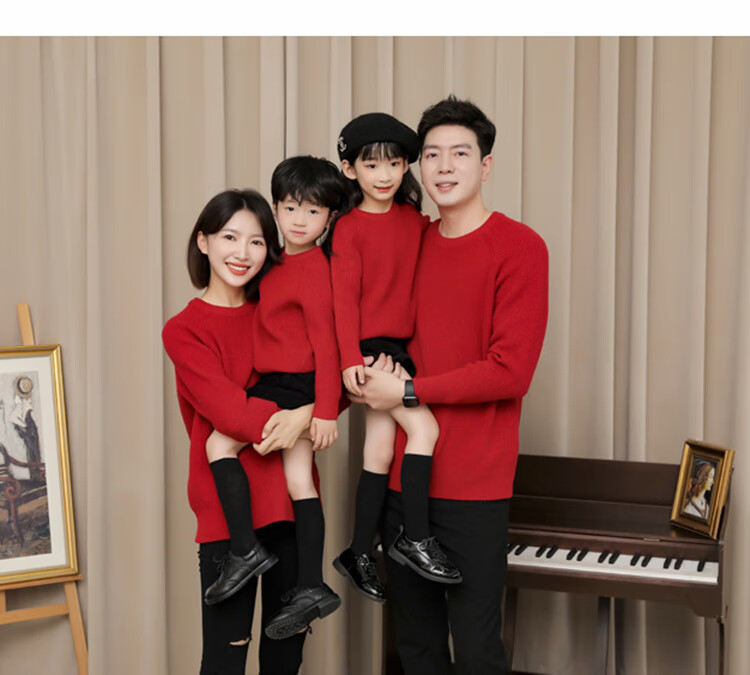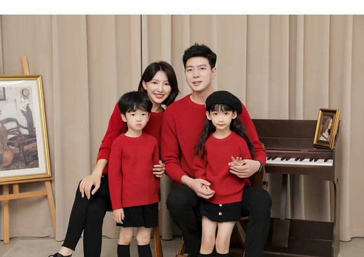 G.duck parent-child clothing 2025 new autumn and winter clothing for a family of three, mother and daughter, red family portrait photo New Year sweater, sweater 100 cm, regardless of gender