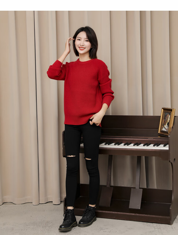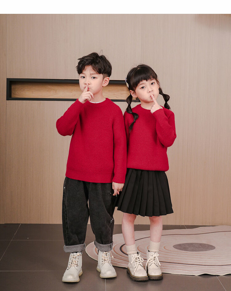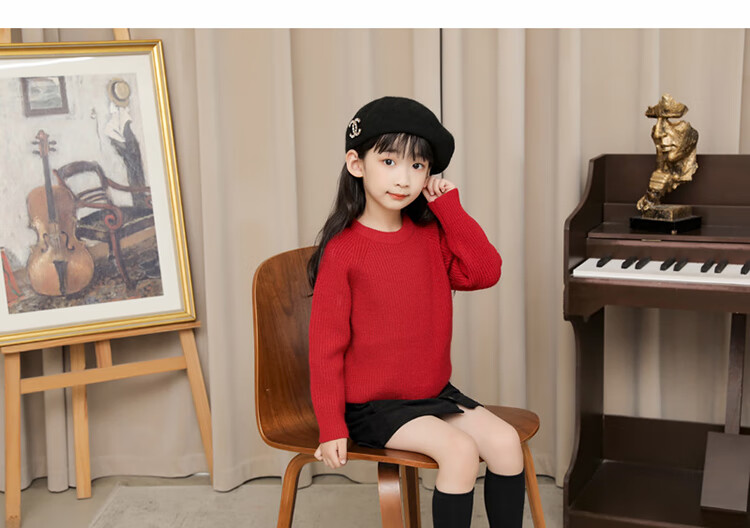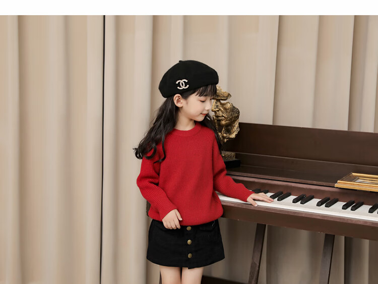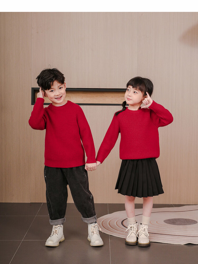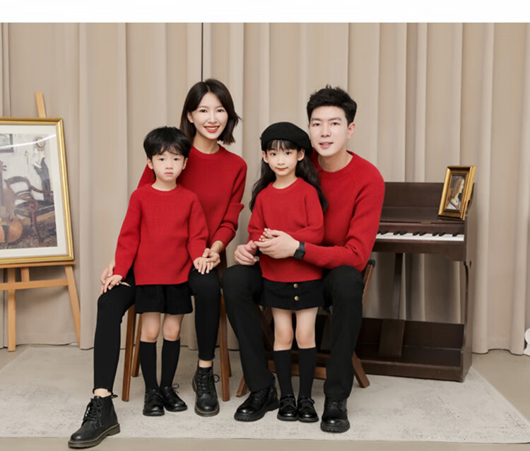 G.duck parent-child clothing 2025 new autumn and winter clothing for a family of three, mother and daughter, red family portrait photo New Year sweater, sweater 100 cm, regardless of gender