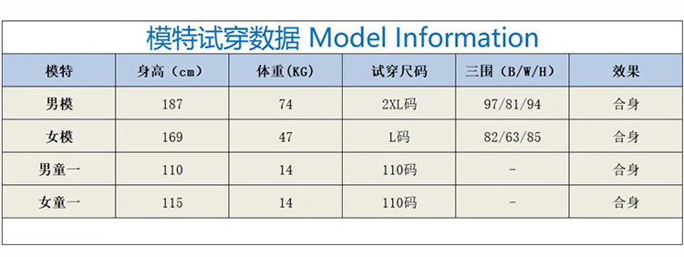 China (cm) 165 / 88-90 170 / 96-98 175 / 108-110 180 / 118-122 185 / 126-130
