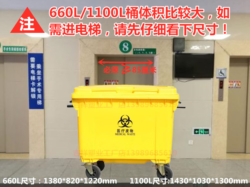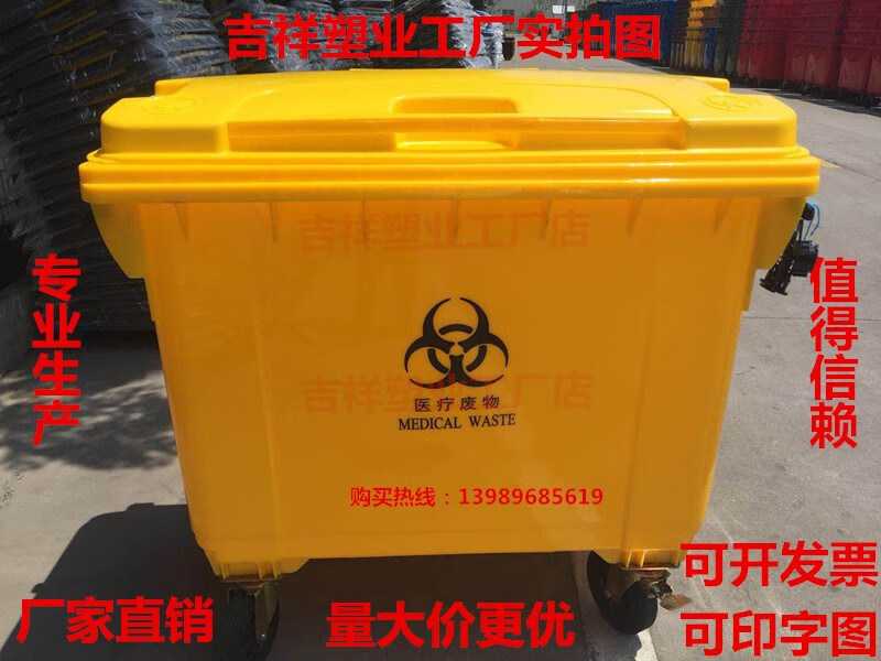 660L Liter 1100 Yellow Trash Can Garbage Transfer Truck Hospital Garbage Truck Outdoor Pedal Waste Waste No Yellow Thickened Imported Material 1100L Plastic Handle Without Cover