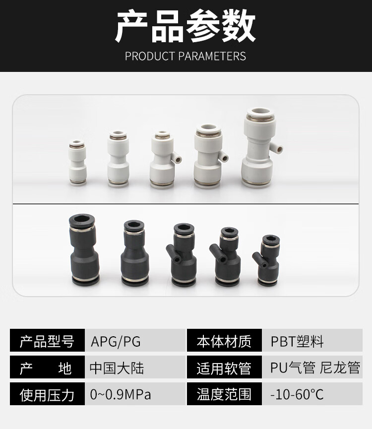 PU tracheal joint two-way quick connection PG16-14-12-10-8-6-4-3 plastic quick-plug size variable diameter straight through PG14-6 (two-way 14mm to 6mm)