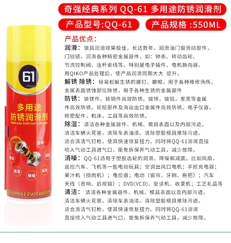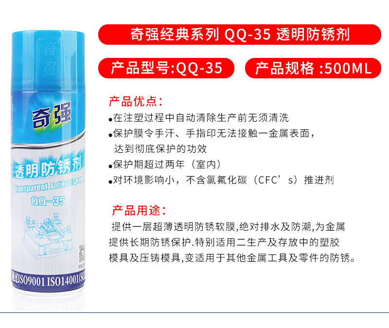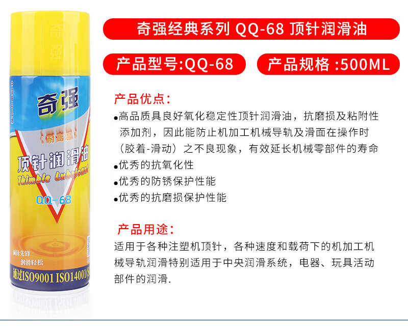 Hong Kong Qiqiang mold high temperature resistant ejector oil lubricant anti-rust agent cleaning agent QQ-38 39 68 71 ejector lubricant QQ-68